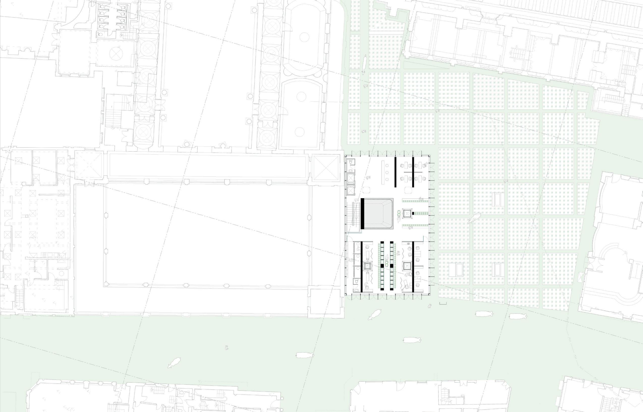e ground condition, previously occupied by commercial activity, becomes a horizontal plane which extends domestic living space out to the city beyond and a new covered piazza space within the block’s interior engages everyday life with the rituals of bathing.