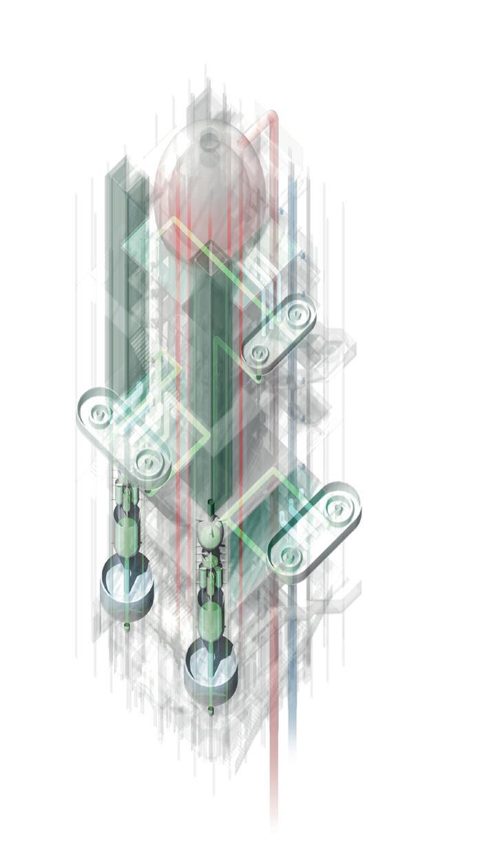 e Remedial Bathing Machine is a project in which the traditions of thermal bathing are reintroduced to treat skin disease, building on the social history of Bath as the source of mineral-rich water with purported therapeutic bene ts. is project reinstates public bathing in post-carbon Bath, introducing a new building typology towering over central city, integrating natural and machinic processes and a therapeutic social space to celebrate the abundance of heat and mineral-rich water.