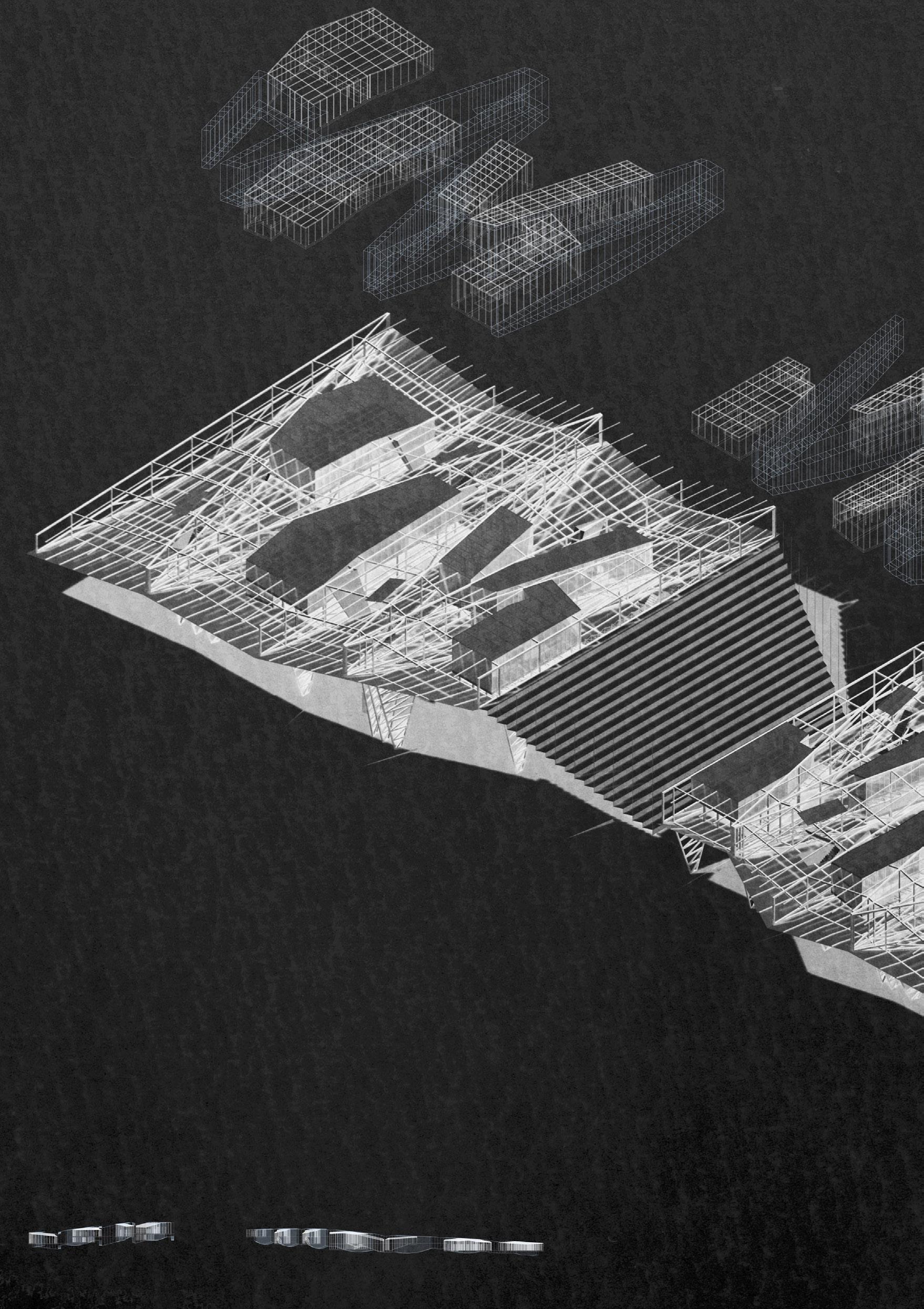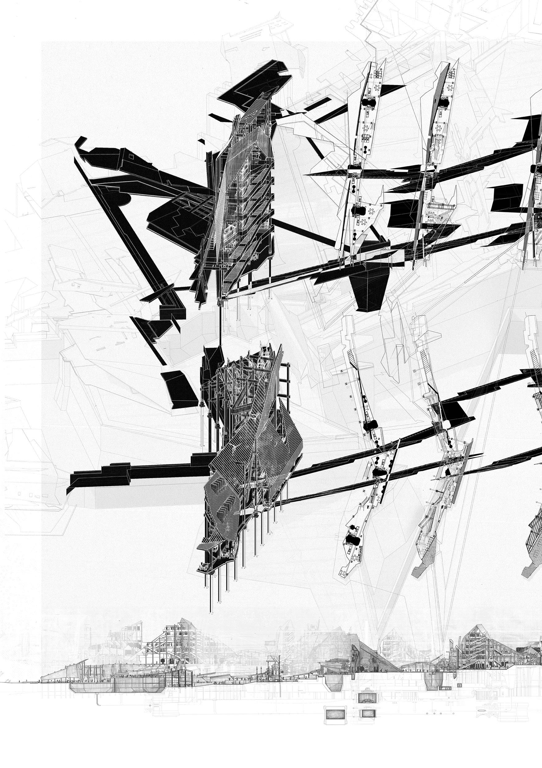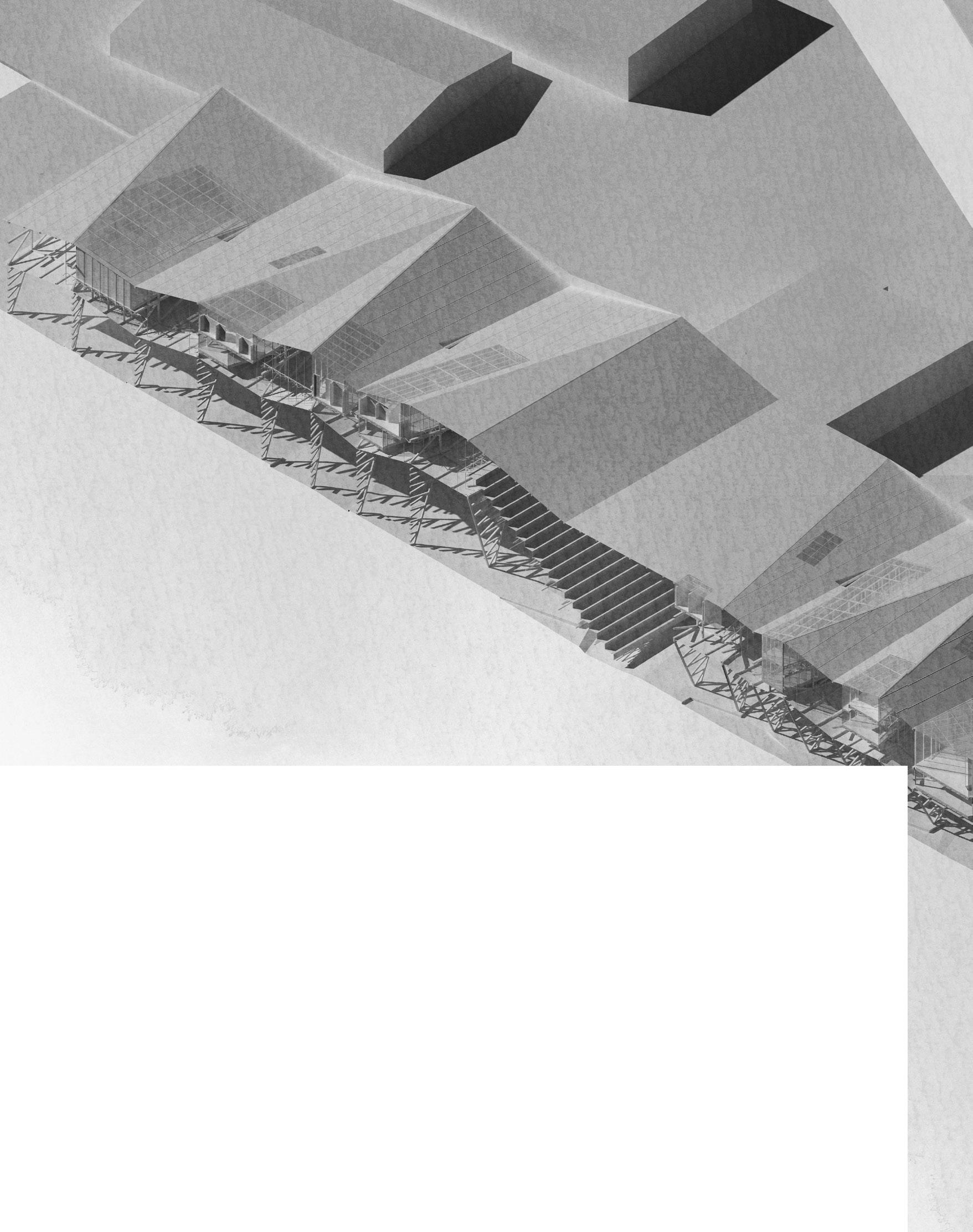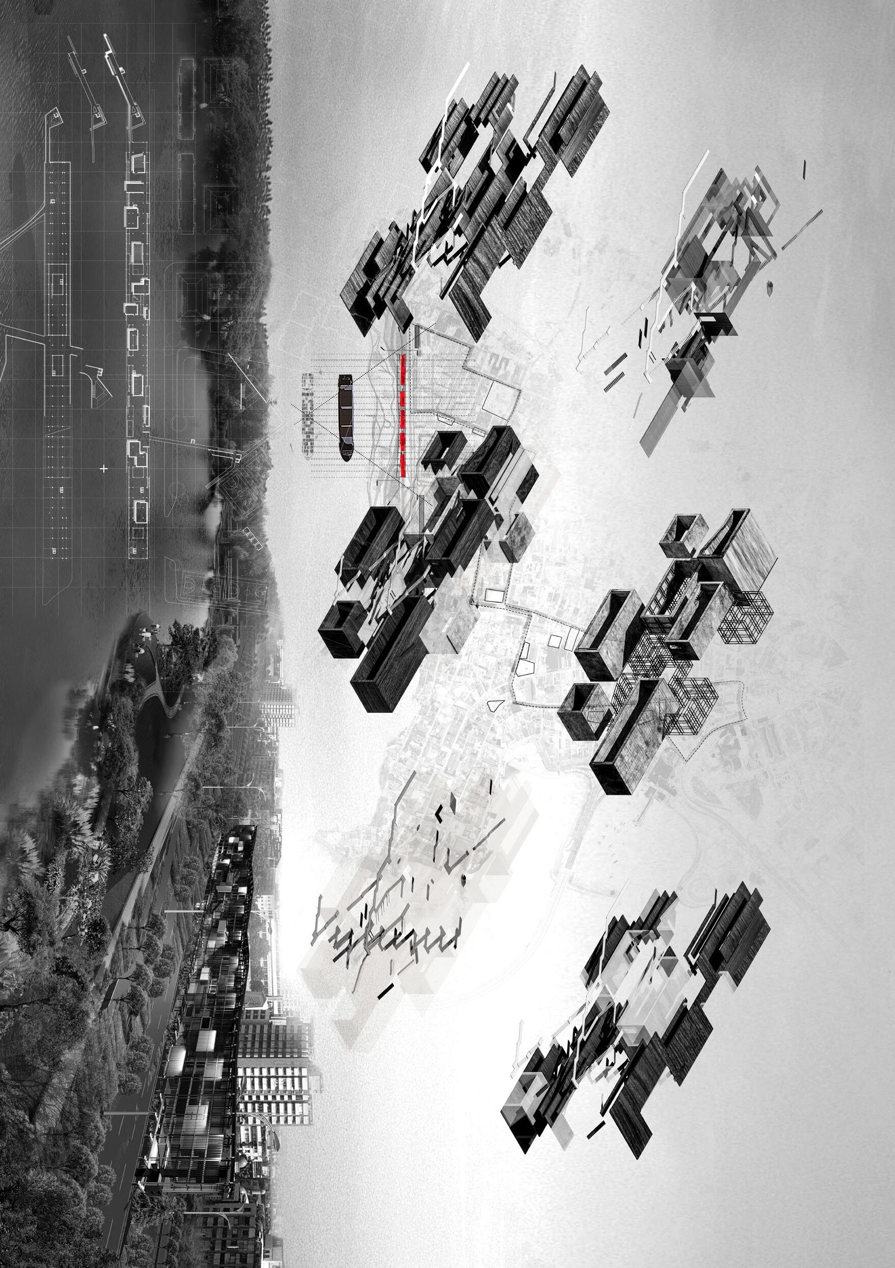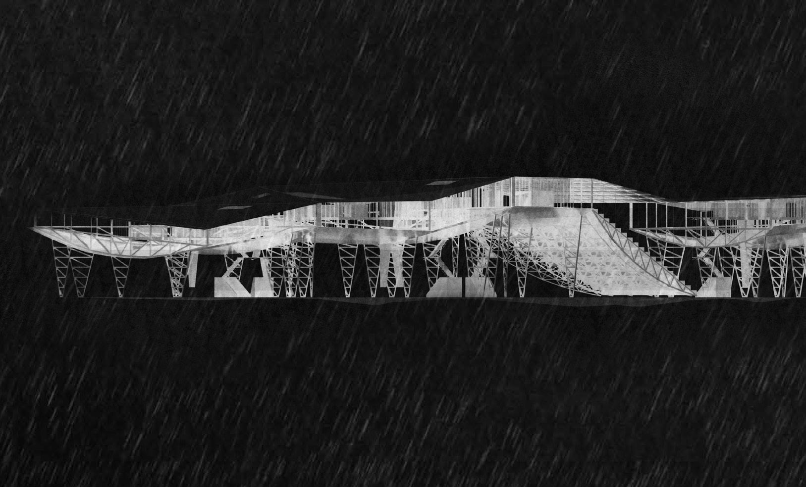 The project proposes a sequence of architectures including fish markets, fish processing stations, restaurants, and recreational areas. These spaces spill into the seafront whilst creating docks and small harbours for independent fishing boats. Interspersed with voids and shaded sites of water, people experience the transformation of the city in a constant state of alternation – moving from cityscape to seascape.