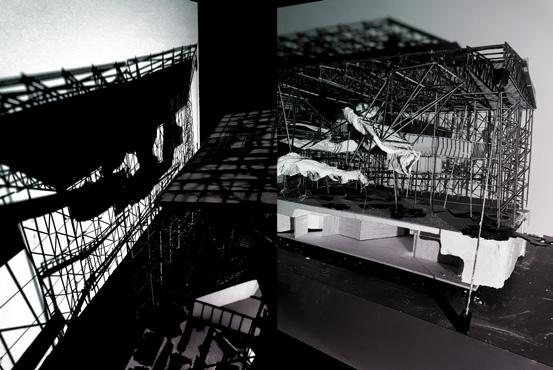 Layeringcomplexity:facadestudy eastelevation,screeningtheatre axonometric(left)
