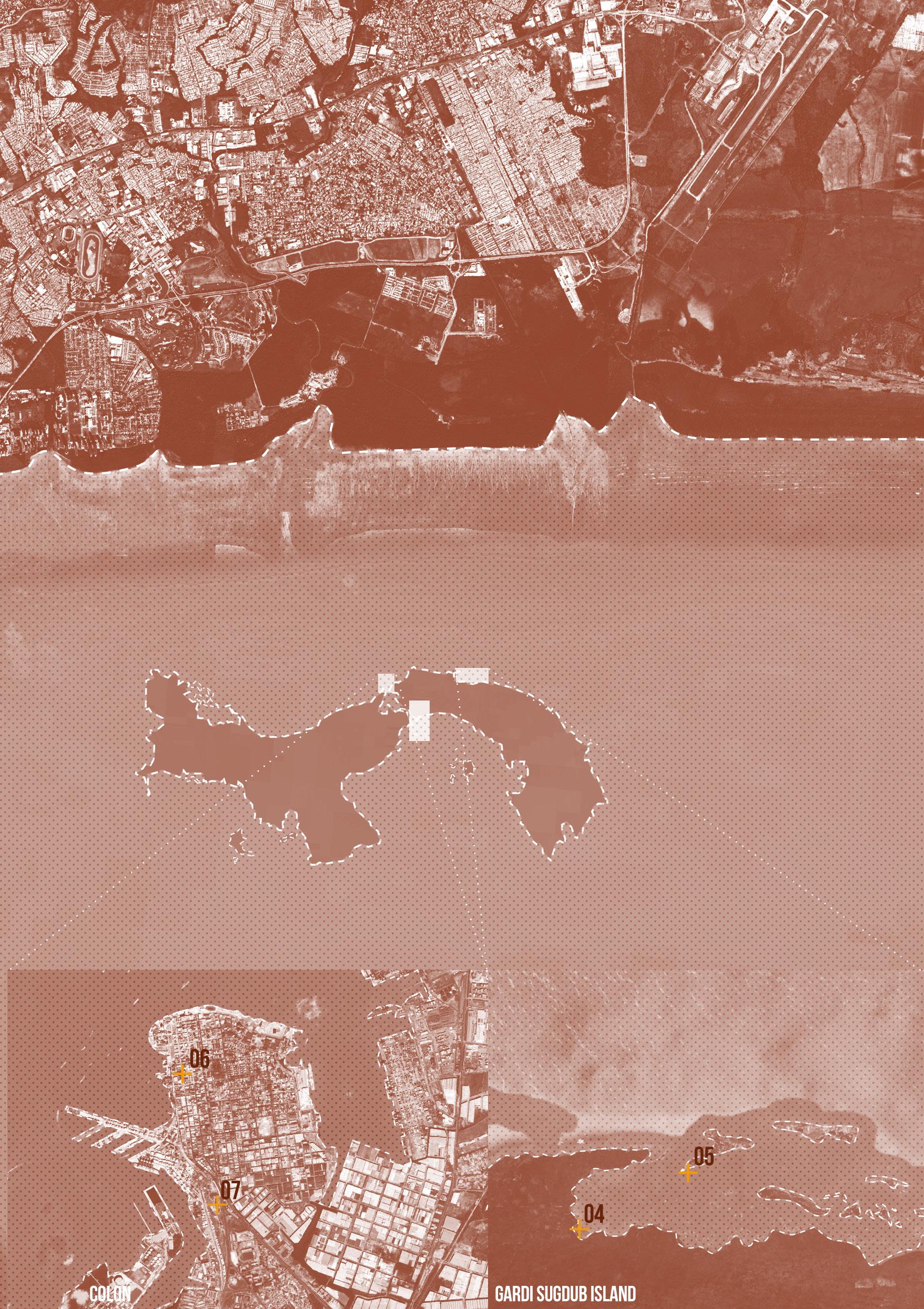 At risk of losing their habitats because of rising sea levels, this project seeks to create a new home for the Guna community in Colón that preserves their heritage while also fostering the educational and economic growth of the city. The intervention acts as a bridge between the city and the sea, and between Colón and the Guna community. At the heart of this vision is a coastal museum that invites visitors to discover the beautiful textile techniques that this vibrant culture has evolved, through a journey between the urban and coastal enclaves. A derelict historic building adjacent to the museum houses a new cultural centre to catalyse the life in this district, encouraging interaction and collaboration between the local and the Guna communities through its porous space. The design inhabits the existing structure to provide a range of flexible spaces for education and a city library within the upper levels, while enhancing transparency at ground level for casual encounters. Surrounding the museum and the cultural centre are the network of residences for Guna families and the textile workshops that support their subsistence. Part and parcel of the rich heritage of the Guna community, this project also celebrates its dynamic habitat. The new development thus lives through the rhythms of the sea and of the people who call it home.