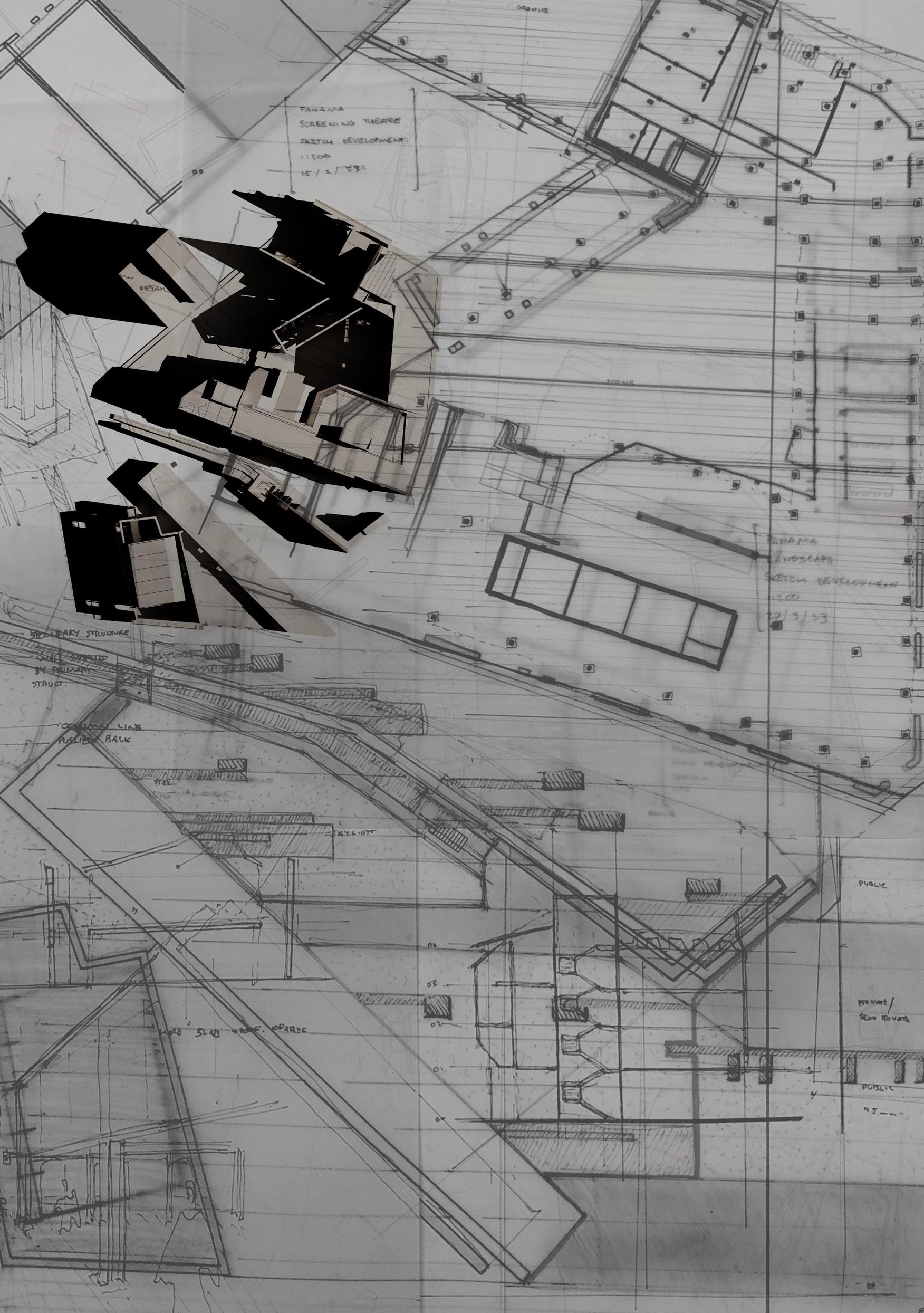 The concept derives from the reading a wall in Panamá Viejo, which survived the sacking and displacement of the city. Studies of the wall were developed to examine the intentions left by those who built it, through imprints from physical and intentional gesticulations left on the wall. This became a projection onto Panamá City as a development without record that obscures the Panamanian identity through a history that is non-accessible. Rather than a centere dedicated on the past, the Theatre of Context focuses on the present, amassing an archive of the city in which the human and non-human are inextricably entangled.