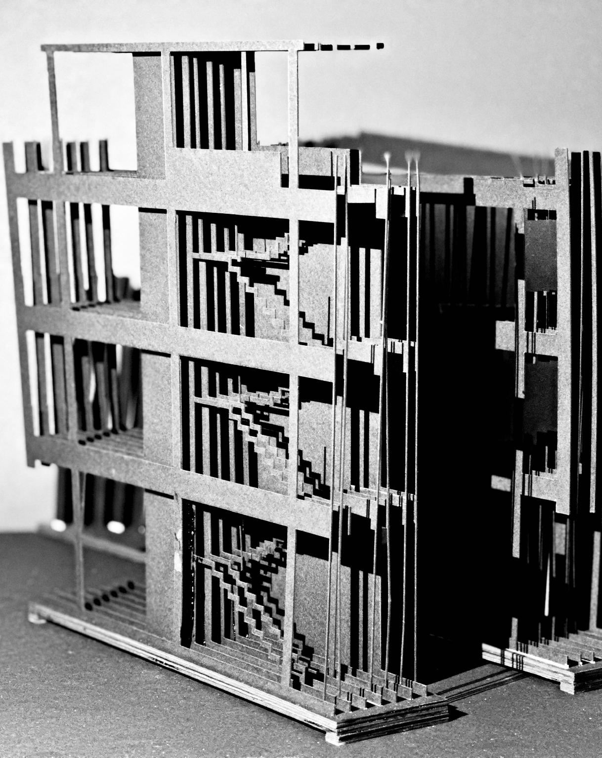 This project dissolves edge conditions and fosters community engagement through fluid public space and shared ownership. It works upon a semiderelict site in the UNESCO World Heritage site of Casco Viejo to develop a proposal for a National Centre for Photography, which takes the form of a series of interventions contained within existing building shells. The site is understood as an accumulation of historic traces that have been deposited upon its ‘sensitive surfaces’ in a way akin to the photographic process. This analogy is deepened by the presence of the historic studio of the nineteenth-century Panamanian photographer Carlos Endara, whose work documented the city and its transformations. Other presences include a massive fragment of the wall of the colonial Spanish settlement of San Felipe. The architectural study proceeded through an investigation of the poetics of marked and layered surfaces, articulating thickened conditions that modulate materials in light and make space for intimate moments in the life of the city and for their photographic display. This extended into the design of the urban surface as a play of banded stone and reflecting pools of water. The study culminated in the construction of a major model that explored this strategy of material layering. Programmatically, the Centre is concerned with documenting, exhibiting, educating, and archiving heritage in Panamá through imagery. It provides skills exchanges, galleries, workshops, and temporary accommodation to offer a broad understanding of culture. Starting with the end users, this project engages with Panamá’s living heritage, because ‘Sin Habitantes No Hay Patrimonio’.