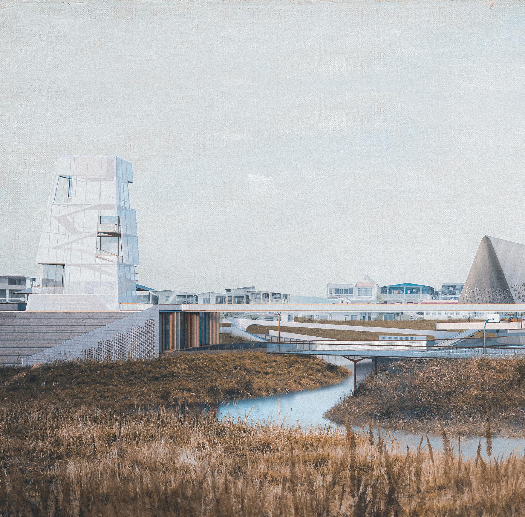 Regenerative Wetland creates a new landscape, with values extrapolated from designing within an informal vernacular and inspired by shipping vessels floating through the water. Seven vessels compose the scheme, each unique in identity, serve as flexible civic programme for fishermen and residents. These vessels are designed flexibly within an infrastructural scheme to allow for prospective additions to grow organically from the needs of the residents, as they continue to face adversity within a rapidly urbanised landscape. The wetscape, therefore, allows for design that incorporates natural water filtration using saltwater reeds, and an incremental response to flooding. This project seeks to design flexibly and organically to create an ecosystem that can continue to regenerate the landscape, economy, and lives of residents.