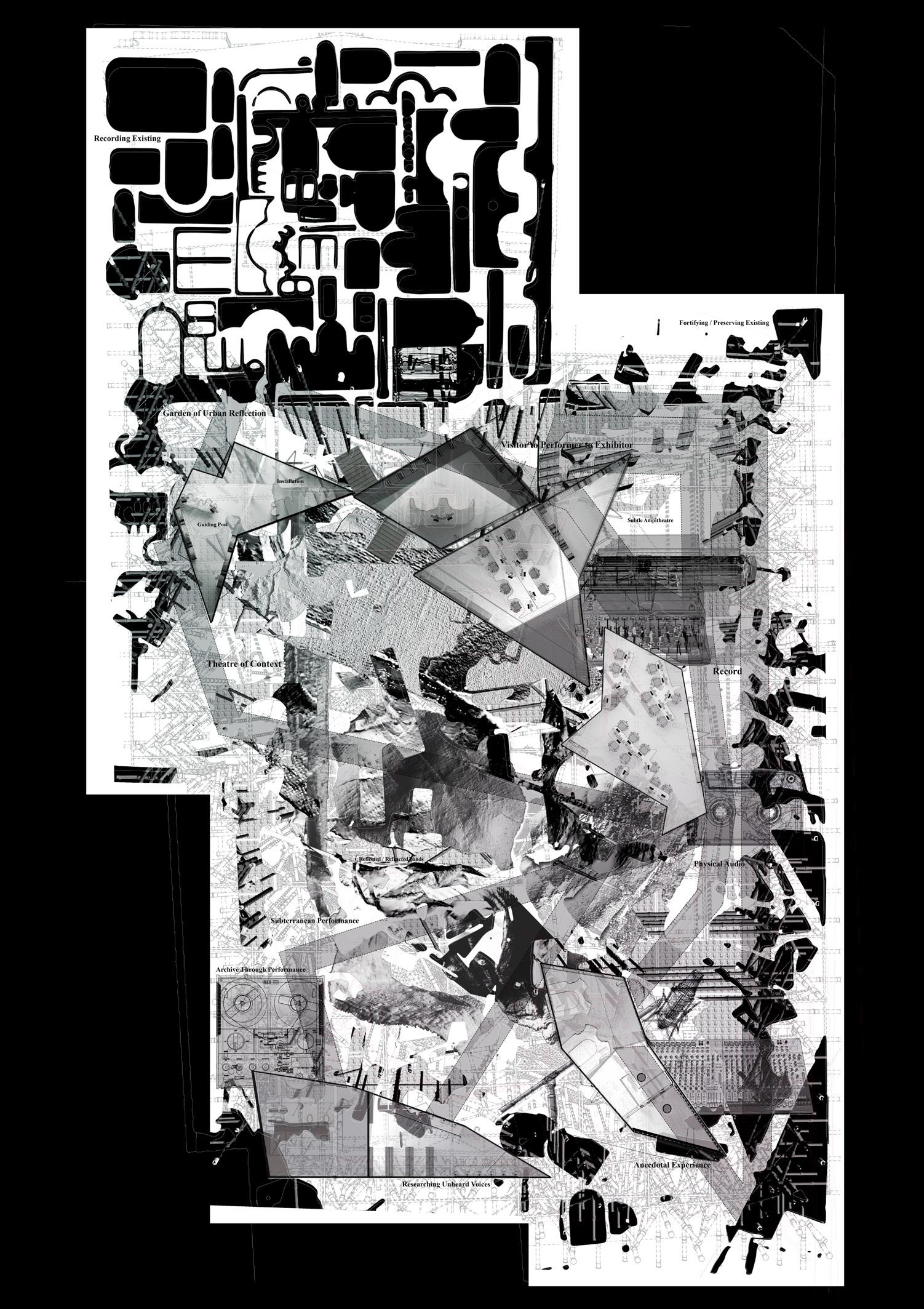 The thesis analyses context in the setting of an archive by examining how colonial archives present information in a purified way. Each room in the proposed Archive/Theatre hybrid acts as an architectural archive by using articulations of the historic theatre frontage in their furniture designs. The project is concerned with putting visitors ‘centre stage’ as, for example, in the layout of the ticket office that invites visitors to reflexively sit and watch the process instead of forming a simple queue. The Archive/Theatre encourages visitors to record themselves and to enter the archive by becoming part of it, this transforming them in sequence from visitor to recorder to performer with the aim of developing a general context of the city through anecdotes and stories.