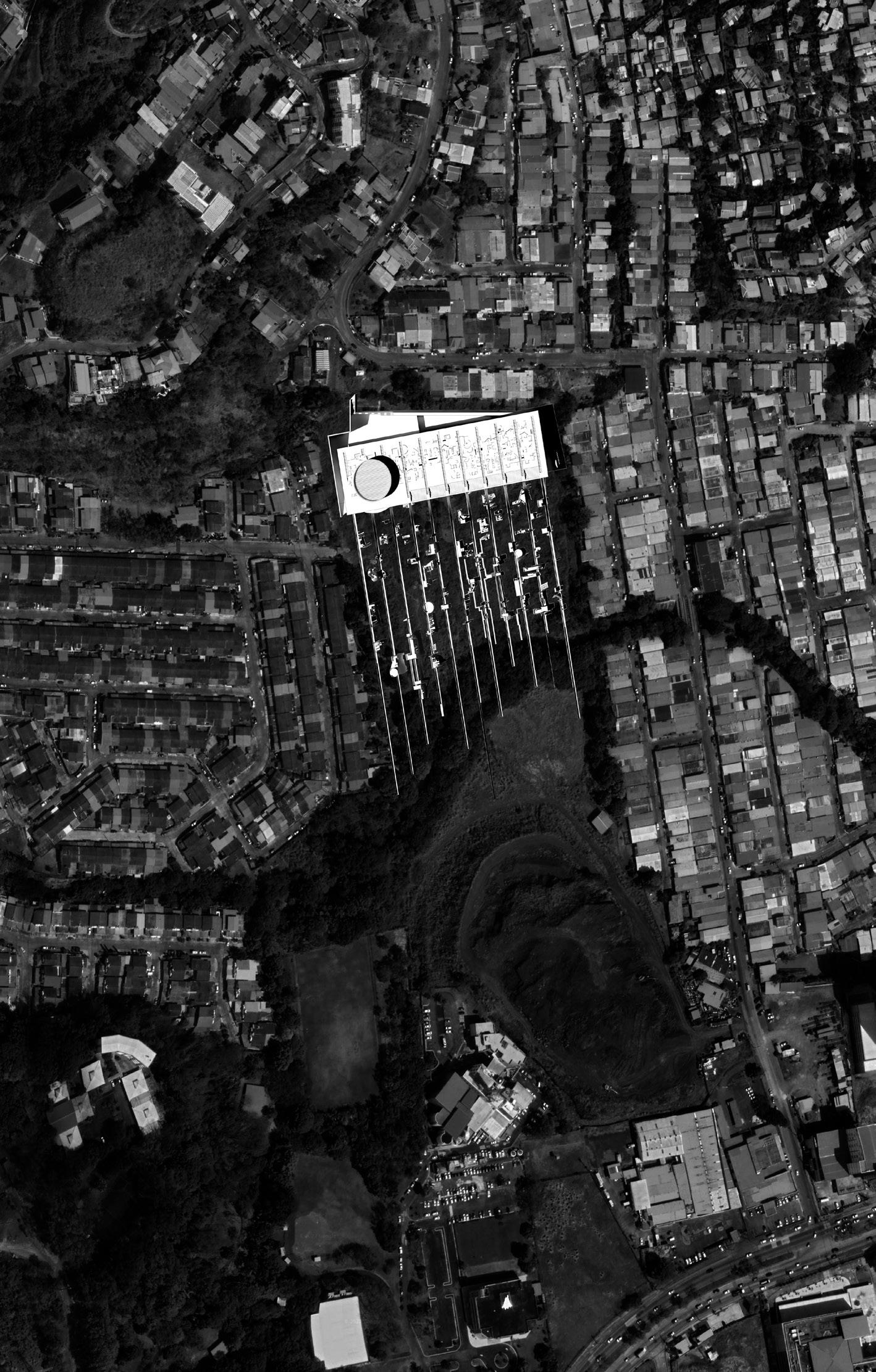 Edges: Infrastructure for Urban Development in Panamá City is a multiscalar response to the microcosm of fragments that construct an urban node around the informal settlement of Viejo Veranillo, and located nearby to the neighbourhoods of La Cresta and Perejil. There is opportunity for investigation within this ‘micro-Panamá’, enabling potential responses to be extrapolated to other edges of the physical and intangible fragmentation that defines the urban morphology of Panamá City.