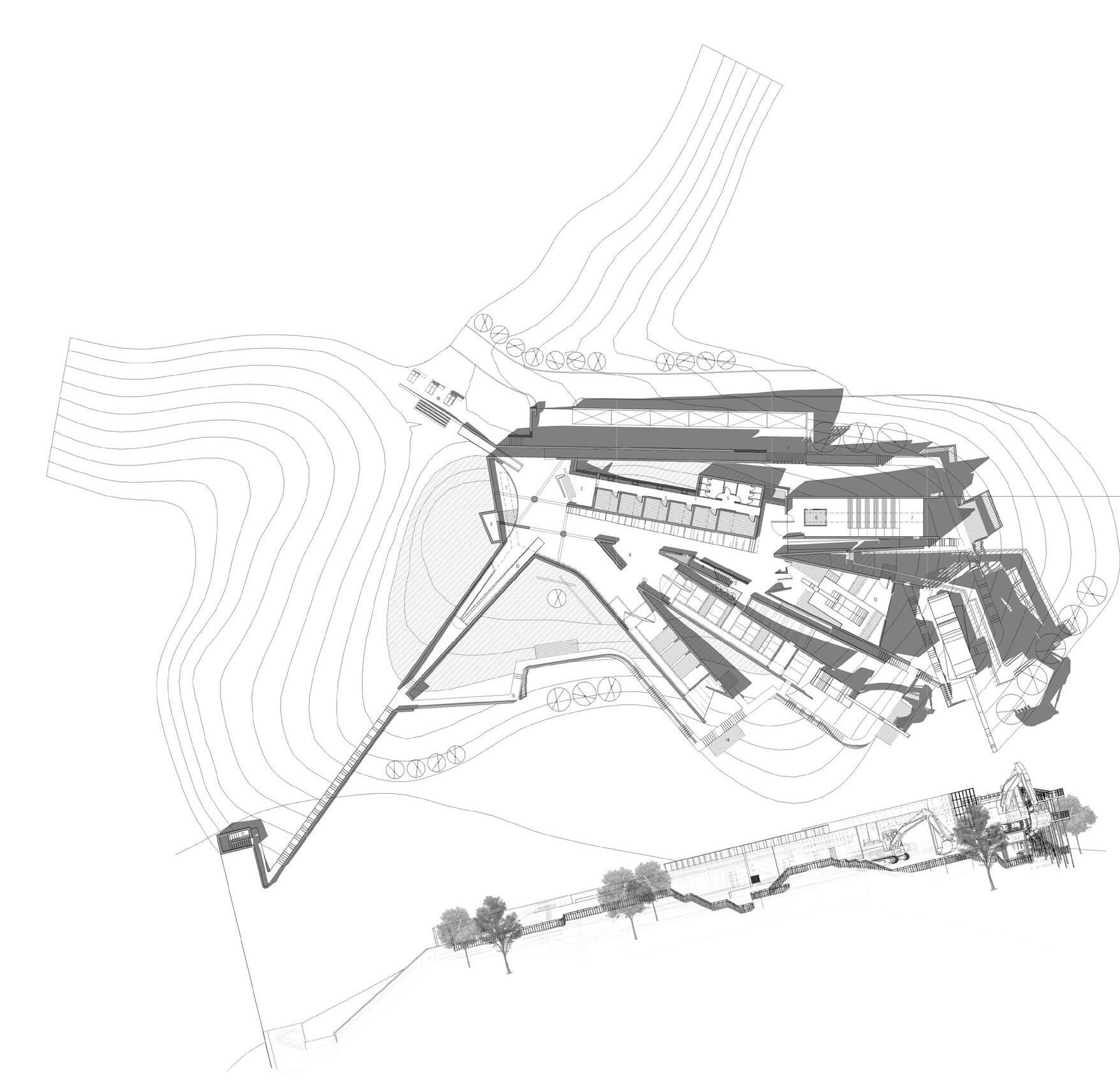 Generalplanandperspectivesectionofthecomplex(above)