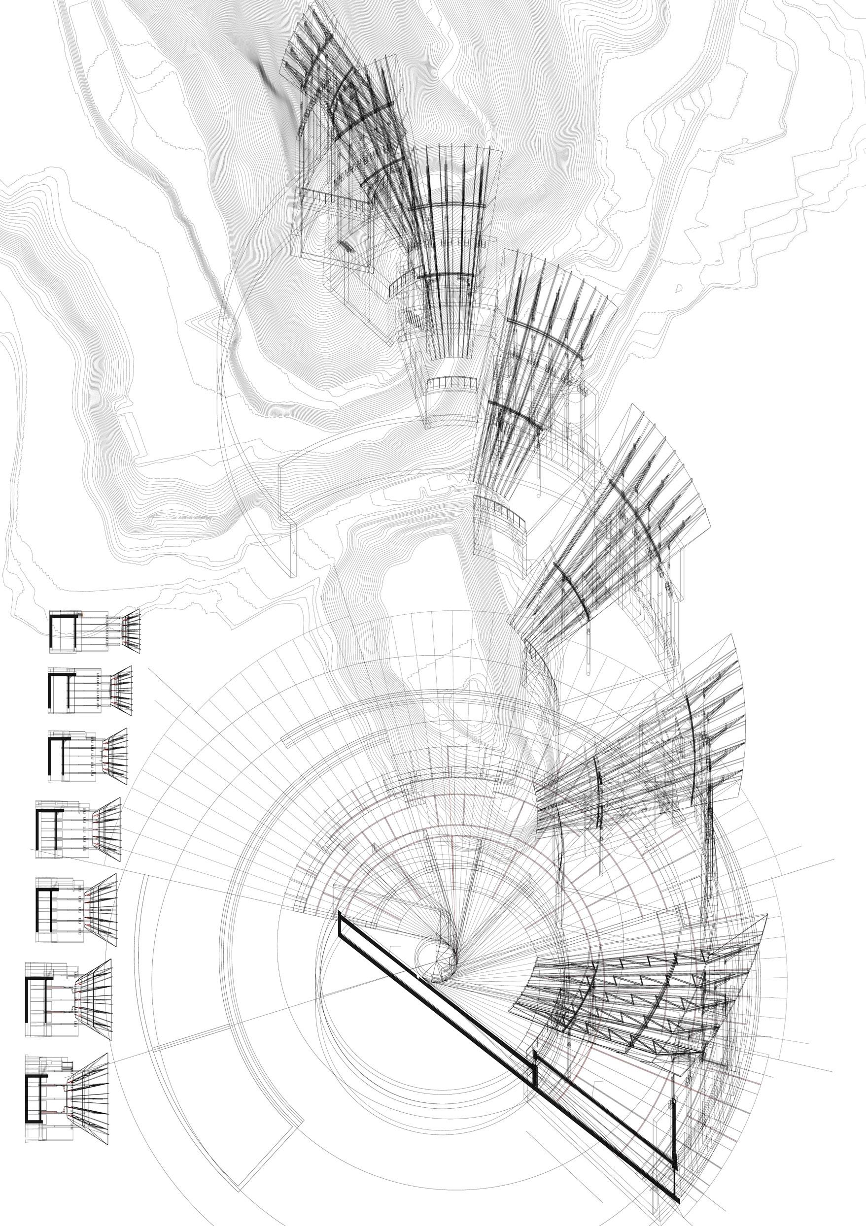 Studymodelofoneofthetowers(previous) Morphologyoftowersandroutes(above)