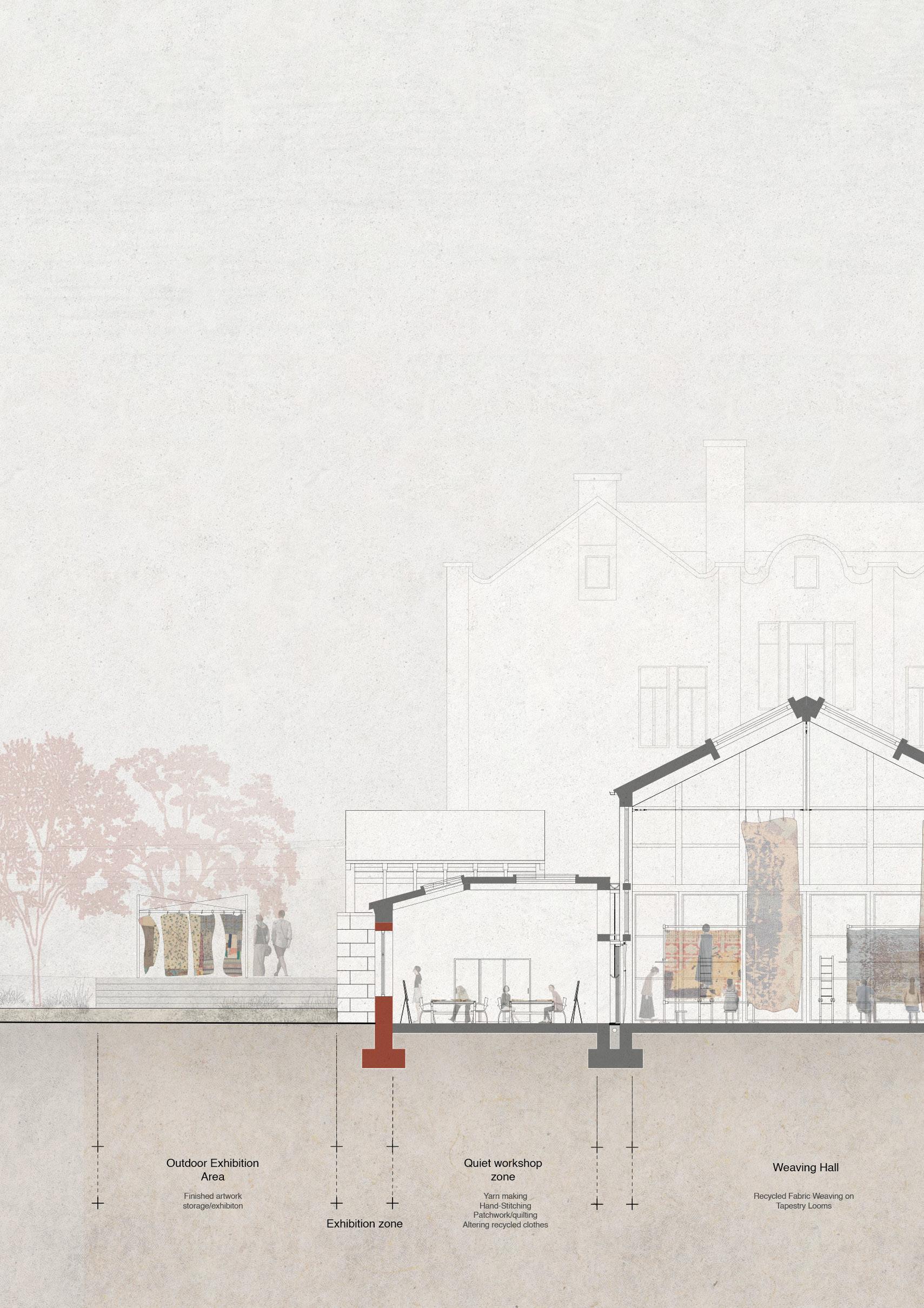 By bringing back the traditional industry of textile-making, which has been gradually losing its significance due to the dominance of petroleum, the project aims to establish a handcrafted revival of Aberdeen. As the work with fabric and yarn can prompt a sense of embodied care and support in both makers and consumers, the workshops will become sanctuary and resting places for people around the city, located in Torry.