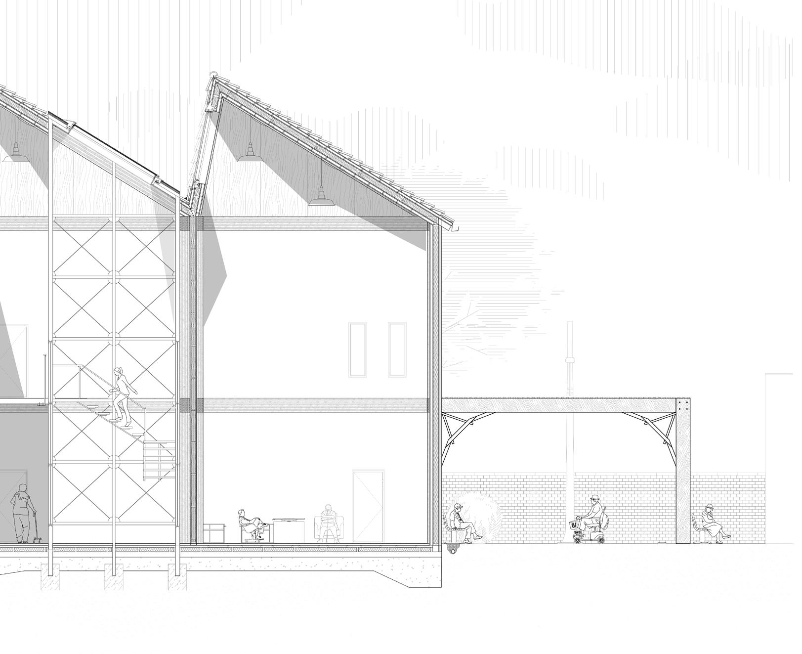 Sustainability is approached holistically – considering not only the materiality of the built environment, but also its social and economic dimensions. The project repurposes an abandoned textile mill as a brickworks, producing these low-carbon bricks while generating local employment. The “live brick” supports non-human inhabitants and fosters biodiversity, embedding ecological care directly into the building fabric.
