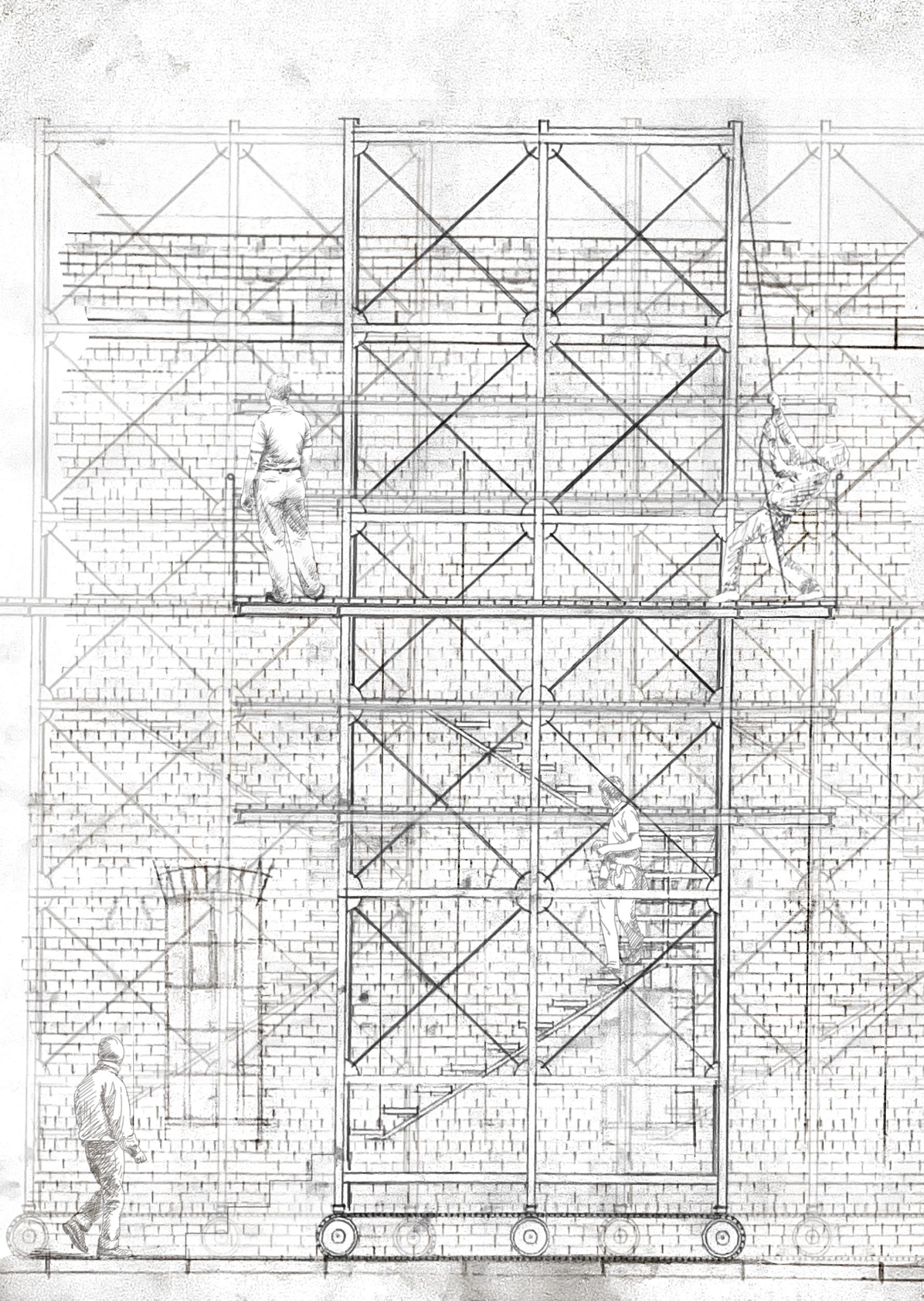 This site and project will act as a catalyst, pulling the transition to postpetroleum closer to reality and rethinking values, collective practices and distribution of resources around Aberdeen. Transforming the buildings from a state of disrepair to a new, collectively inhabited place in Torry, the project incorporates textile workshop studios and building retrofit through a collective, crafted and purposeful adaptation over time.