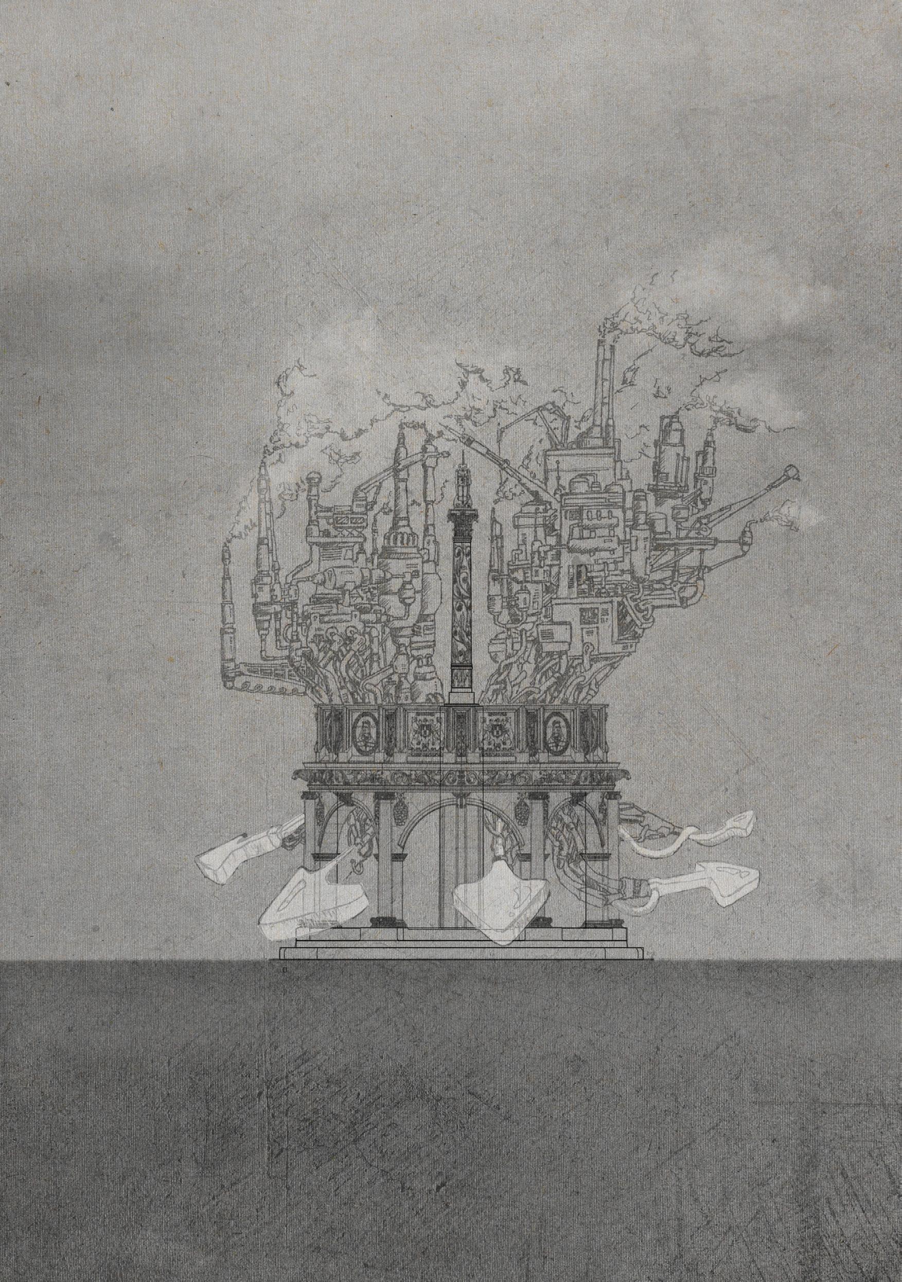 The concept of God can be translated as the dominant force of each era. The most powerful narrative; the one dictating both behaviours, in a large scale, and the physical manifestation of collective subconscious, imprinted (in amongst other domains) in Architecture. After all, the most prevalent examples of historical architecture were the ones honouring a God. It is evident that our god is now the petrol-dollar. With skyscrapers becoming temples to the monetary system and oil rigs the backbone; both rooted in an extractivist culture. To imagine a God of the future (one instead based in mentality of symbiosis with nature) a new temple is proposed: re-imagining the oil platform as a space for self-reflection and personal growth.