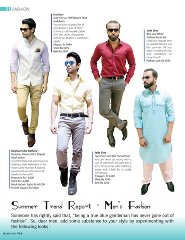 Summer Trend Report - Men’s Fashion Someone has rightly said that, “being a true blue gentleman has never gone out of fashion”. So, dear men, add some substance to your style by experimenting with the following looks 28 MAY, 2016 - TULIP