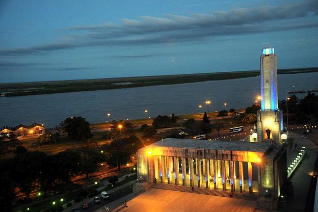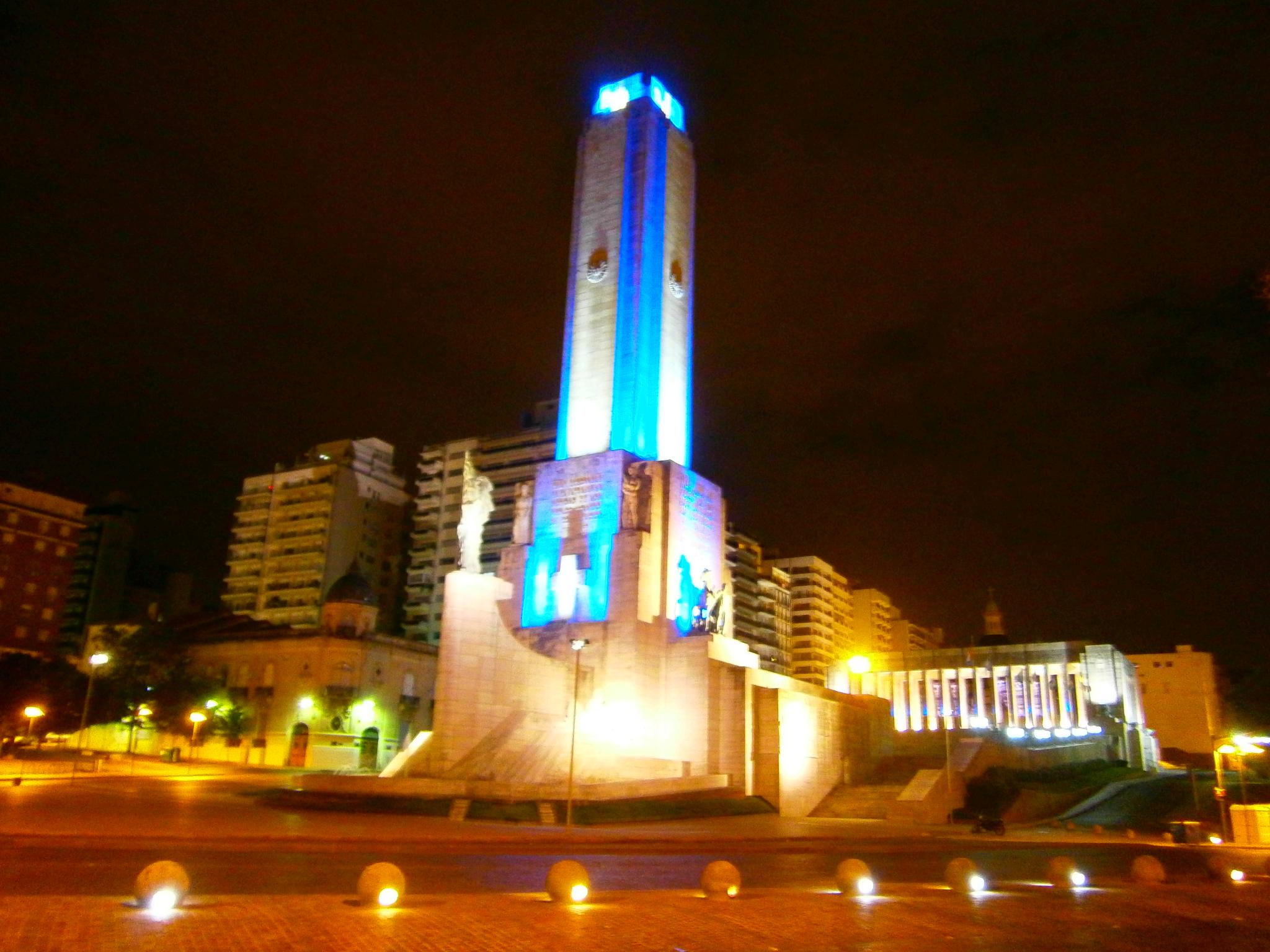 Este es el monumento de la bandera de noche cuando se prenden las luces.(Rosario)