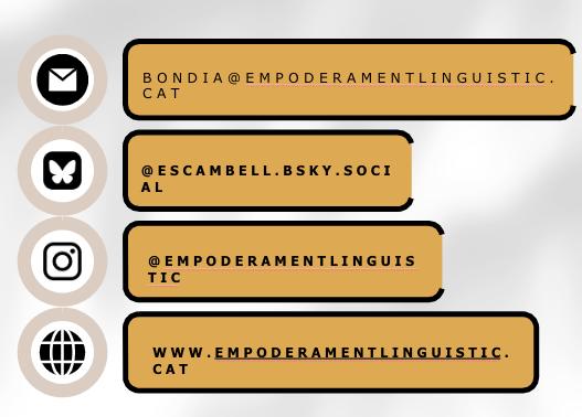 Aquesta dinàmica també és treballada als tallers d’empoderament lingüístic que realitza el col·lectiu L'Escambell. En aquests tallers, es fomenta que les persones participants incorporin el català de manera progressiva en el seu dia a dia, afavorint un ambient de suport mutu i creant petits hàbits lingüístics que contribueixen al reforç de la llengua i la seva visibilitat, tal com es fa amb altres hàbits saludables.