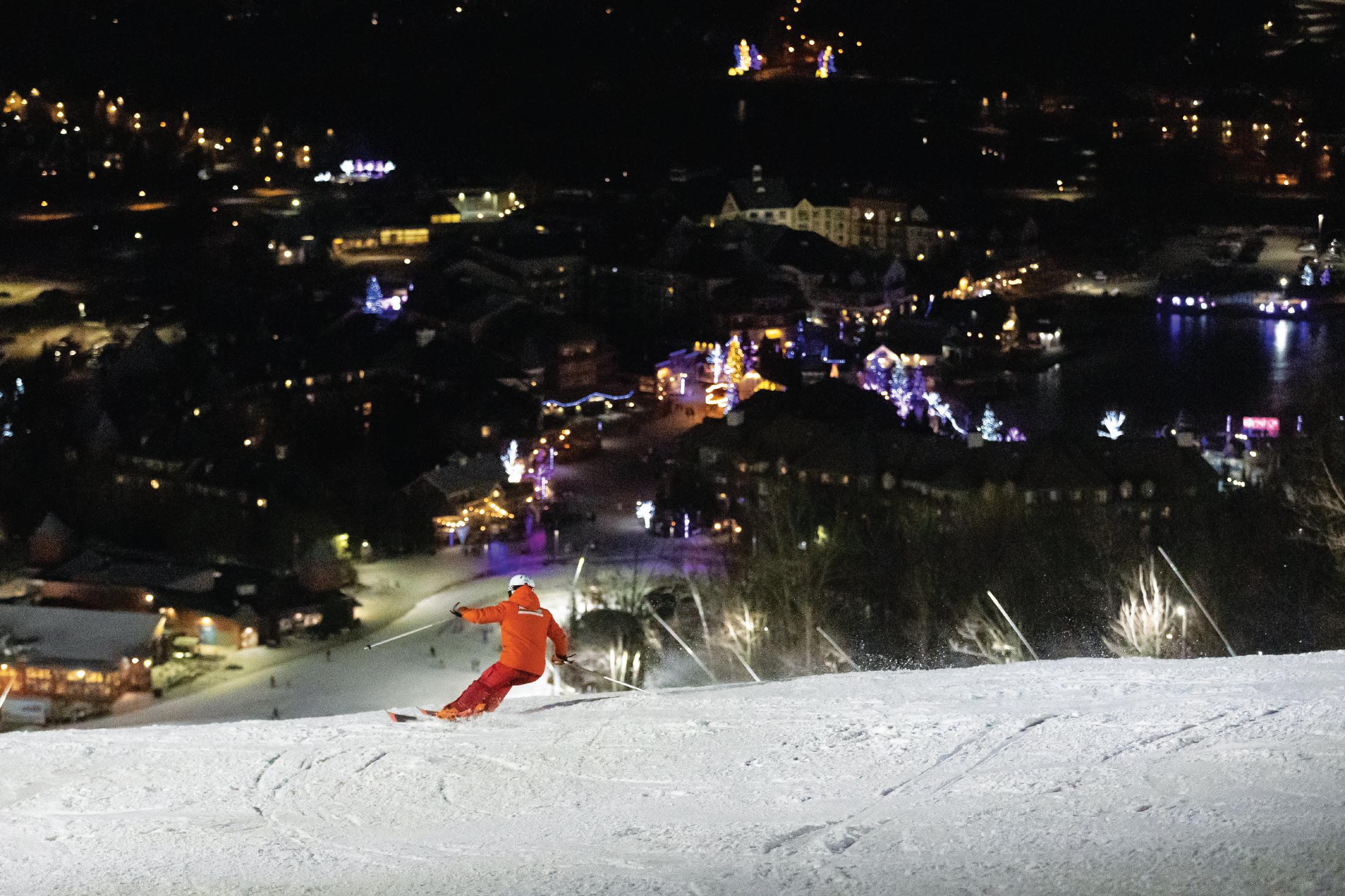 Ask another local about the perfect early-morning run, and you’ll likely hear murmurs of Schuss. This intermediate-toadvanced trail on the north end is for skiers who crave a good challenge, especially in the crisp, early light before the sun fully rises. It’s a local favourite, offering just enough bite to keep you alert and wanting more. On the opposite side of the resort is Gord’s Groove—a smooth, scenic descent with forgiving turns and sweeping views that stretch all the way to Collingwood’s grain elevators and Georgian Bay. It’s a run where the novice and beginner crowd can take their time, perfecting their turns while