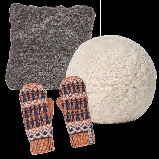 Imported from Sweden, Ojbro Vantfabrik mittens are designed by Ase Ojbro who takes her inspiration from traditional Swedish folklore. Ase and her husband Ted, produce a limited number of 100% organic merino wool mittens in their small family factory. Perfect for Canadian Winters! Make your home a cozy one with these sheepskin cushions all made sustainably in Denmark. The round cushions can be used as a cushion or a pouf.