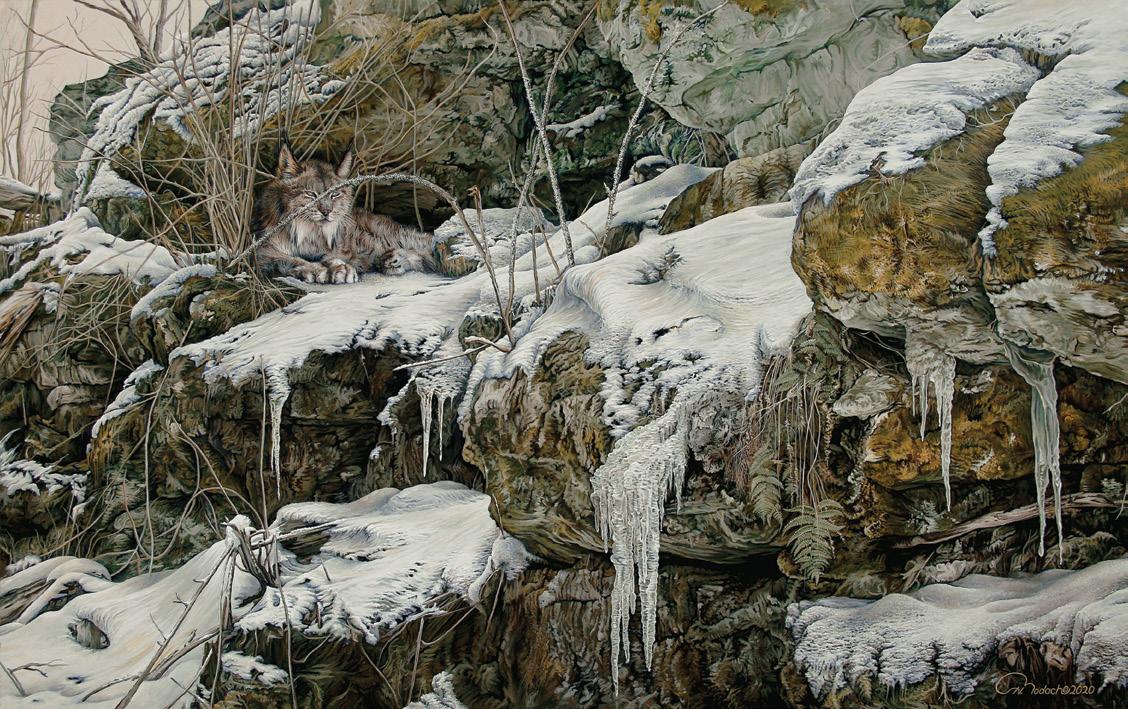 On the cover, detail of Weathered Tree Stump Overlooking Wintering Cottontail Rabbit by Harvey Bodach, acrylic on Masonite, 24" x 16".