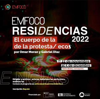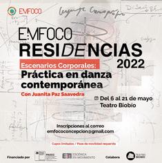 Este 2022 realizamos una modalidad distinta de nuestro Programa de Formación en Danza Contemporánea EMFOCO Nos aventuramos a desarrollar residencias ligadas a la multiplicidad de las artes escénicas, tanto como en la danza teatro, el lenguaje del butoh, la escucha, y la experimentación con las tecnologías Fueron parte del EMFOCO RESIDENCIAS: