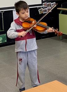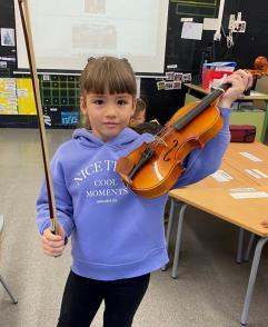 Els grups de 4 i 5 anys, després de gaudir de l’espectacle “sense lluna” ens hem fixat en els instruments, en els sons de la natura, el silenci com a recurs musical i en com podem fer sons i ritmes amb el cos. Hem conegut Vivaldi, compositor I autor de “Les estacions”i hem dibuixat al ritme de la música de “la tardor”. També hem interpretat musicogrames i hem pogut observar i conèixer el violí.
