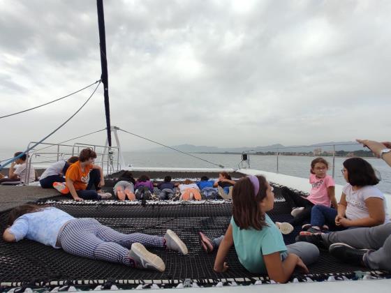 I finalment vàrem poder navegar pel mar en calma, amb un catamarà preciós! Era molt emocionant veure passar l’aigua del mar i alguns peixos per sota nostre, mentre nosaltres estàvem estirats a la xarxa o bé asseguts còmodament.