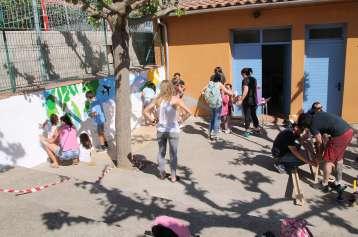 Algunes de les tasques que es van fer foren pintar diversos jocs del terra que estaven despintats, arreglar el jardí de plantes aromàtiques, reinstal·lar el terra del rocòdrom i reconstruir l’hotel d’insectes i la cuineta del pati d'educació infantil. També es van pintar un mural del bosc a la zona dels vestidors i es van construir dos cavallets pels gegantots.