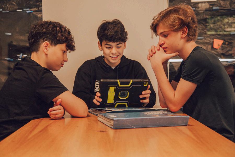 O Projeto Innovation Diploma, em parceria com a D-Tech High na Califórnia, envolveu estudantes do Grade 9 ao Grade 12 em uma série de atividades progressivas e impactantes Nos Grades 9 e 10, os estudantes conduziram pesquisas e exploraram diversas ideias inovadoras. Os estudantes do Grade 9 realizaram entrevistas e filmaram discussões sobre temas comunitários, como o uso de celulares nas escolas e o papel do humor na educação. No Grade 10, os estudantes desenvolveram protótipos de aplicativos de saúde relacionados à pandemia de Covid-19 e ao aprendizado socioemocional, além de estudarem ética e design para criar um manifesto colaborativo de design Essas atividades fomentaram a criatividade, o pensamento flexível e a aplicação de seu crescente conhecimento para desafios do mundo real, tudo dentro de um ambiente de aprendizado colaborativo e transcontinental