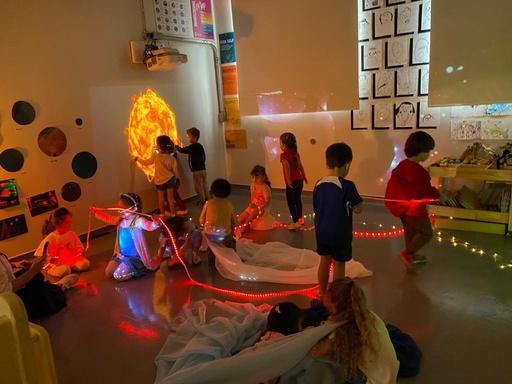 The sky, with its constant transformations: moons, stars, vivid colors, drifting clouds awakens curiosity in both children and adults, inspiring unique inquiries each day By listening to their curiosity, we defined our project’s theme, fostering investigations, meaningful connections, and learning through multiple languages.