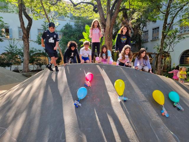 Descobrimos nossos principais interesses nos conhecendo: gostamos de nos expressar por meio das artes, esportes e desenhos Somos também um grupo verdadeiramente preocupado em respeitar a nós mesmos, aos outros e ao meio ambiente Assim, quando alguns educandos perceberam que as meninas não tinham espaço para jogar futebol durante o uso da quadra vermelha nos momentos de intervalo, nos tornamos pesquisadores que tinham um objetivo a alcançar: apoiar todos os grupos no aumento do sentimento de pertencimento nos momentos de brincadeiras, dando oportunidades para que todos brinquem e aprendam uns com os outros.