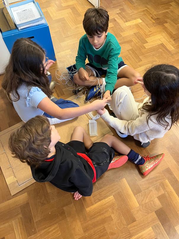 Muitas das suas perguntas eram sobre o que está dentro dos nossos corpos, lançando assim a nossa primeira jornada de investigação Explorações com diferentes ferramentas científicas e digitais ajudaram os estudantes a criar as suas próprias hipóteses sobre o que está dentro dos nossos corpos Depois de muitas propostas exploratórias, os estudantes convidaram um cirurgião para validar as suas hipóteses e aprender mais sobre os sistemas do nosso corpo Isto levou o nosso grupo a colocar a questão: "O que é um sistema?" e "Quais são os outros tipos de sistemas que existem fora do nosso corpo?" Os estudantes começaram então a investigar o que está dentro de diferentes coisas e como é que as coisas são feitas Através deste projeto, os estudantes descobriram que os sistemas são um grupo de partes que trabalham em conjunto para fazer alguma coisa funcionar Aprenderam também que nosso mundo é feito de vários sistemas Viram de perto que os sistemas são complexos e que o todo é maior do que a soma das suas partes