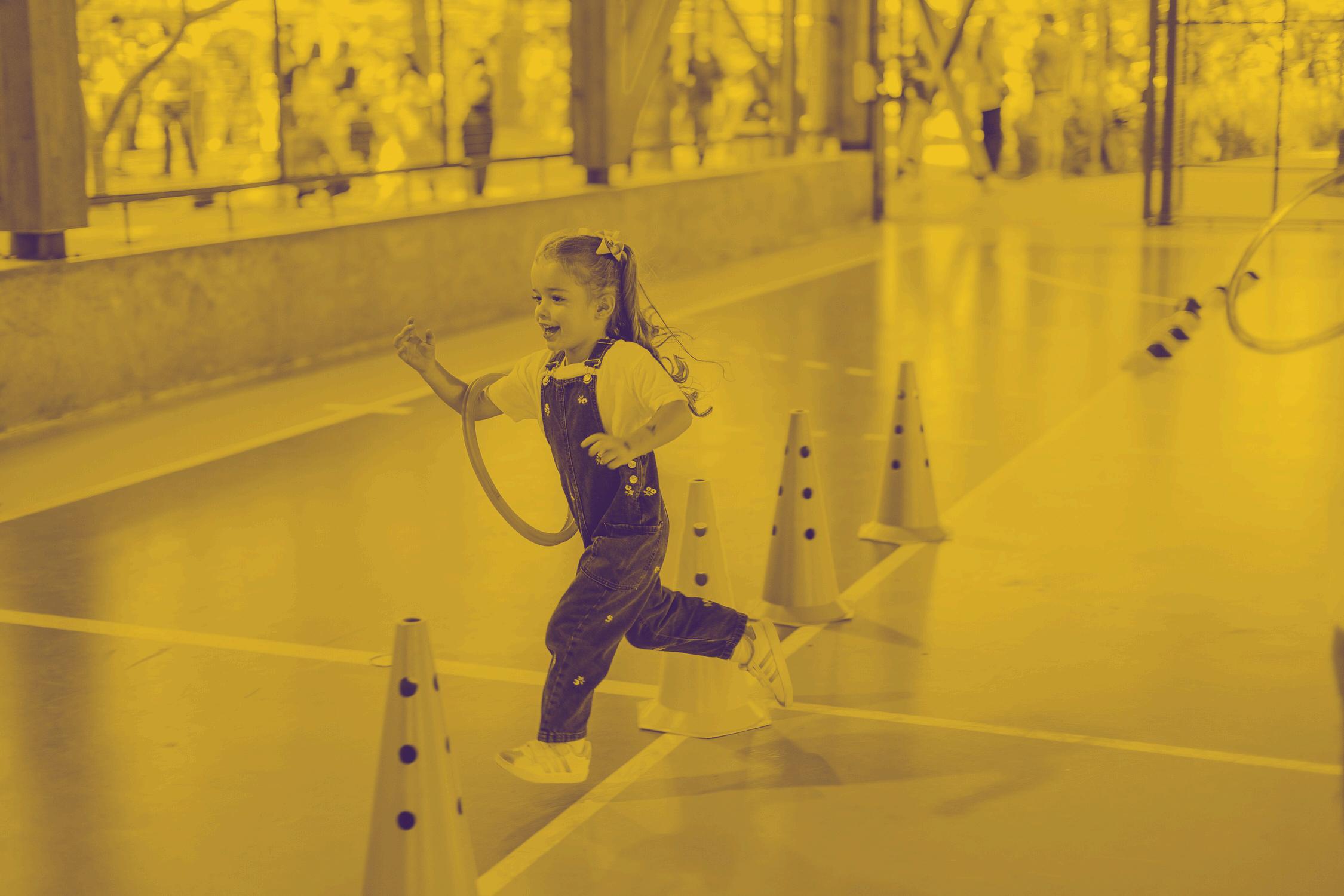 Deslocar-se combinando corrida, caminhada, dança e saltos sobre materiais e de superfícies baixas para mais altas.