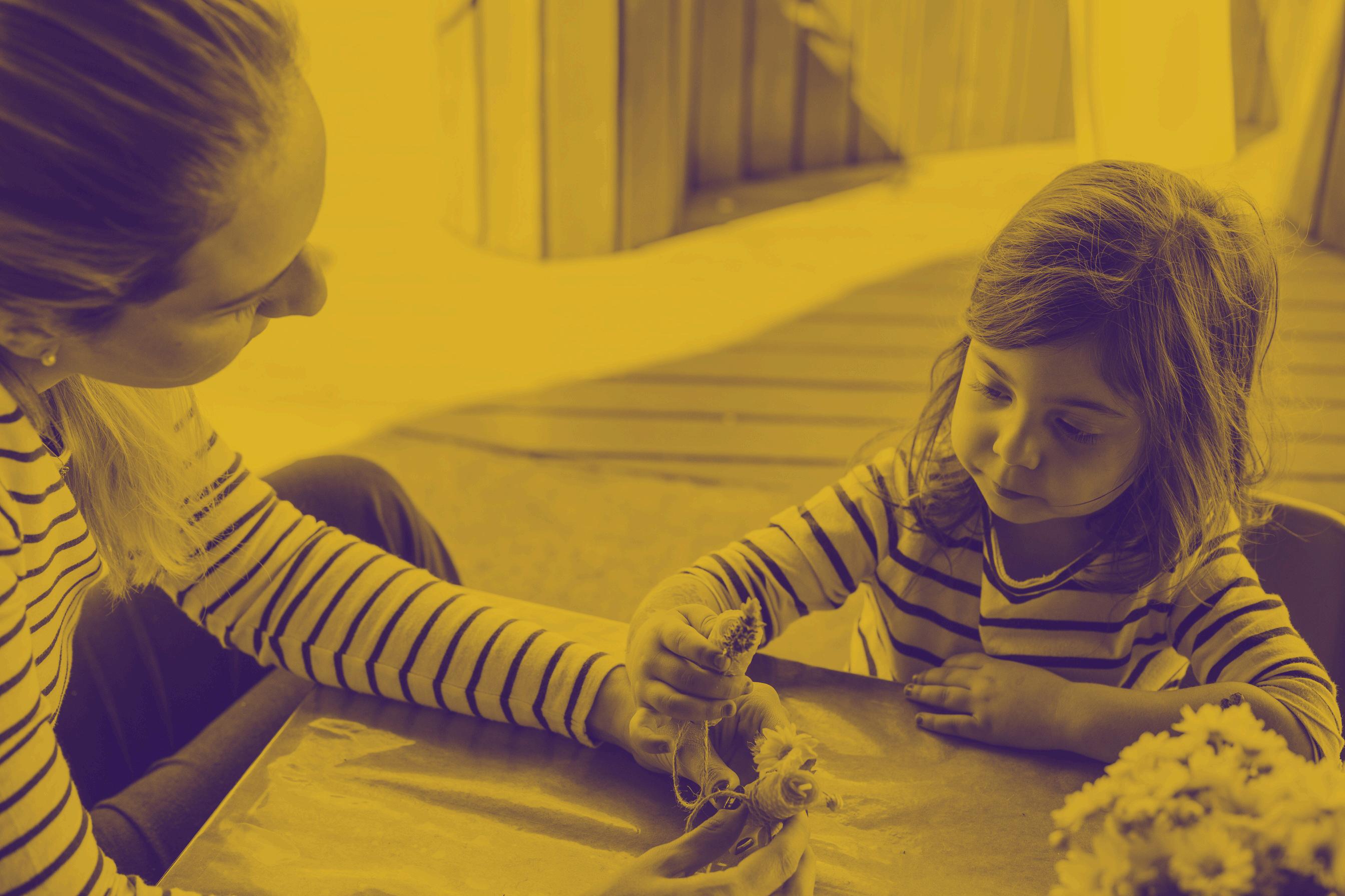 Create situations and contexts, using imaginary objects (serving “coffee”) or objects with a new symbolic function (paper roll turns into a sword); develop action sequences, associating them with familiar situations (carrying a doll, taking her for a walk, feeding her); learn to play with ropes, balls, spinning top; use simple rules in low organized games, such as tag, hide and seek games, tisketa-tasket, duck, duck, goose, my chicks come here and others.
