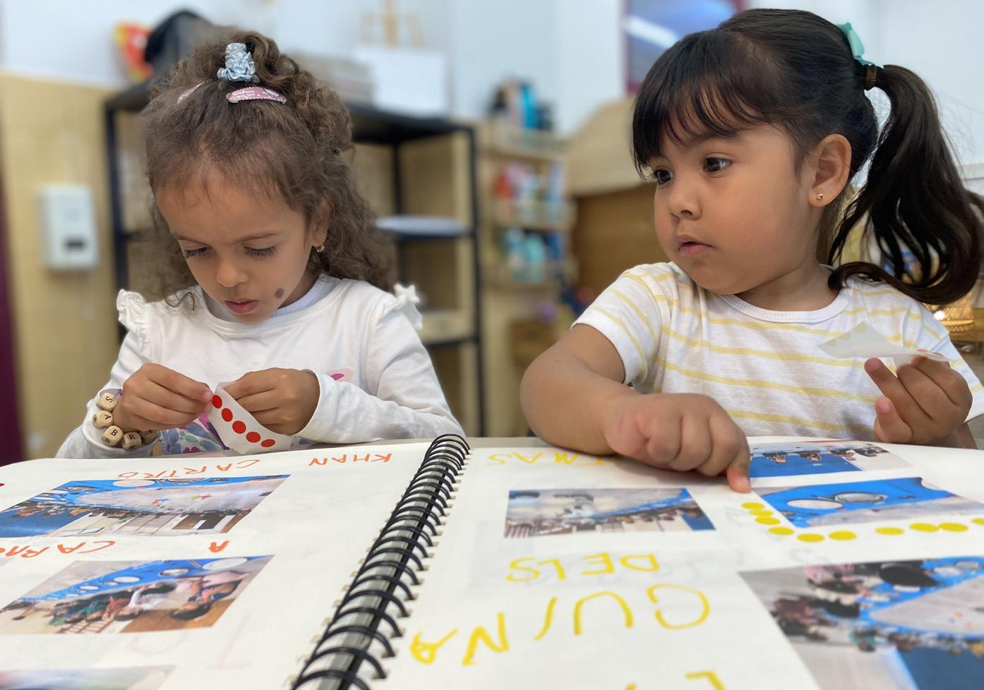 A primera hora del matí, ja s’escolten converses a l’Ara Som de petits i ens apropen per primer cop a una nova llengua estrangera a través del joc simbòlic. Als racons de petits, ens apropem també a la descoberta de les lletres i la consciència fonològica. A mitjans, la llengua escrita pren més protagonisme amb el treball sistemàtic i en les franges d’Ara Escric, on fem volar la nostra imaginació per escriure textos literaris. A grans, com a mitjans, seguim amb l'aprenentatge de l'anglès a Oral Communication, on en grups reduïts podem treballar de manera significativa l'anglès.