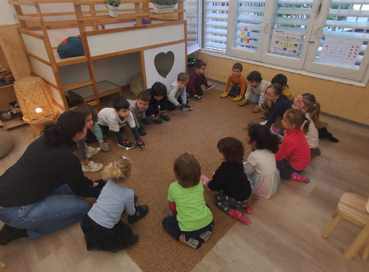 L'assemblea: espai de trobada en cercle que realitzem, diàriament, al matí. Les temàtiques són lliures: podem abordar les activitats del cap de setmana però també poden aflorar preocupacions, necessitats o conflictes que caldria treballar. Aquesta estoneta on seure'ns, mirar-nos i escoltar-nos ens acostuma a exercitar el respecte cap a les opinions, emocions i experiències dels altres i es converteix en una gran font d’unió entre iguals.