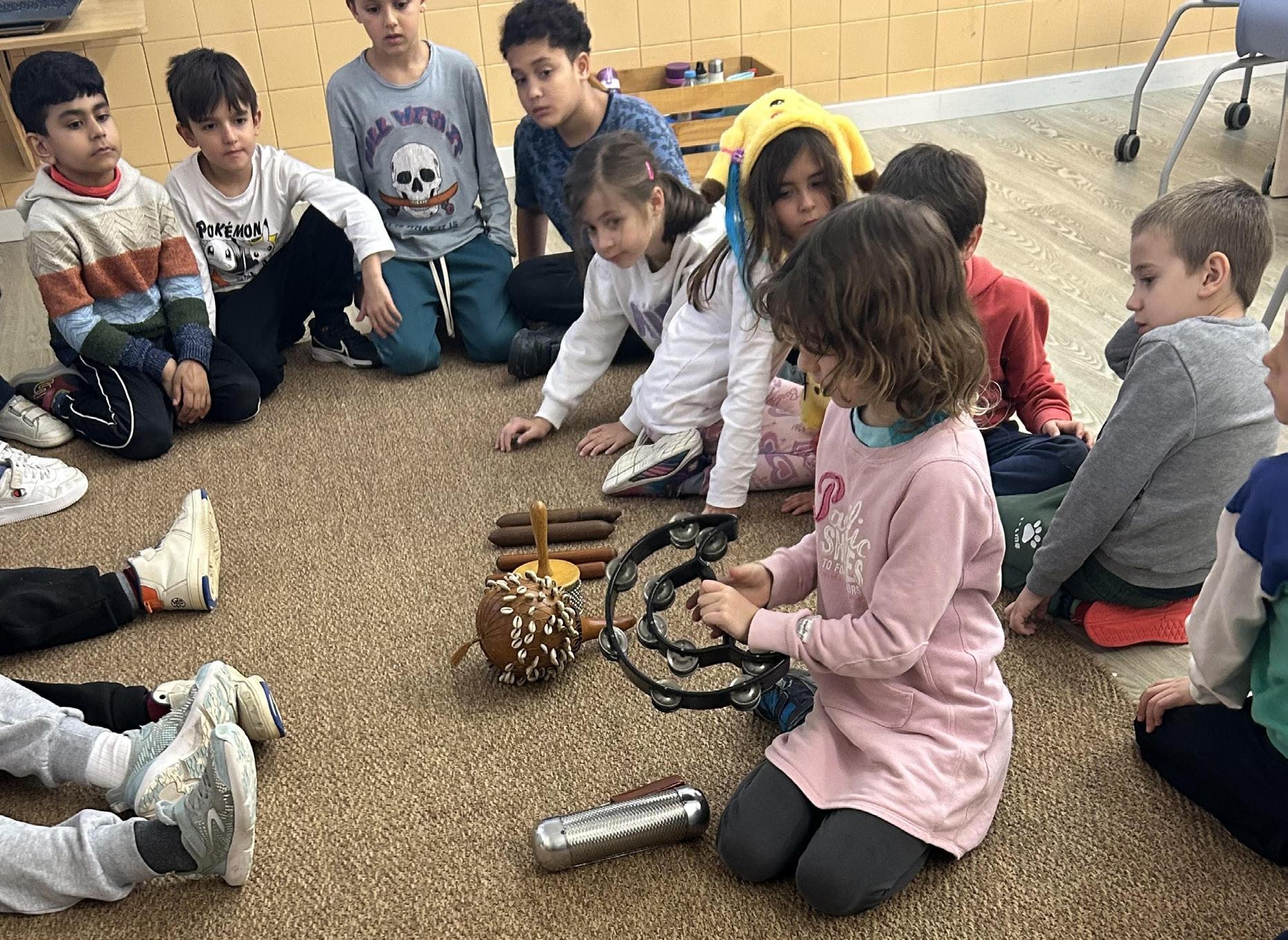 Amb ells vam parlar d’instruments, de les famílies en les quals s’organitzaven, vam crear instruments casolans i vam debatre com en faríem de nous a partir del que ells tenien a casa. Vam cantar junts, vam fer ritmes corporals i vam arribar a la conclusió que l’ingredient essencial per a fer música era la intenció de fer-la.