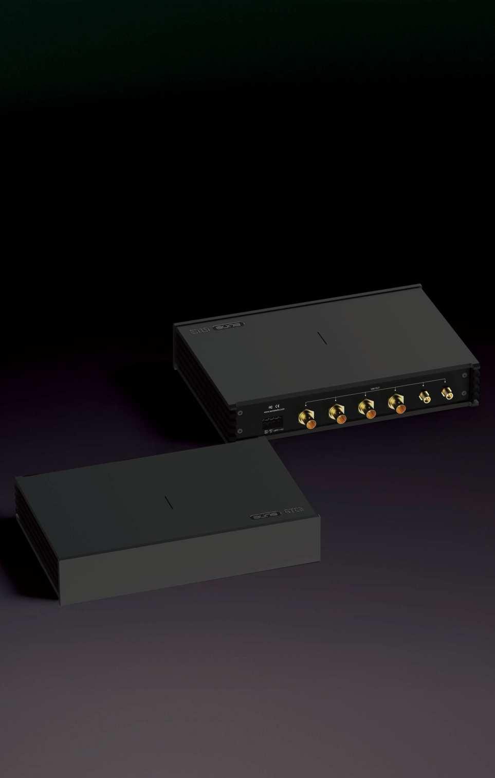 スペシャルモデルGTC 2は、オーディオ用に最適化された恒温槽型水晶発振器(OCXO/Oven Controlled Crystal Oscillator)に、Titansが設計した FS-1周波数変換モジュール、独立して駆動する6つの10M出力インターフェース、高性能電源およびアイソレーターを採用したハイエンドオーディオ・ クロックジェネレーターです。