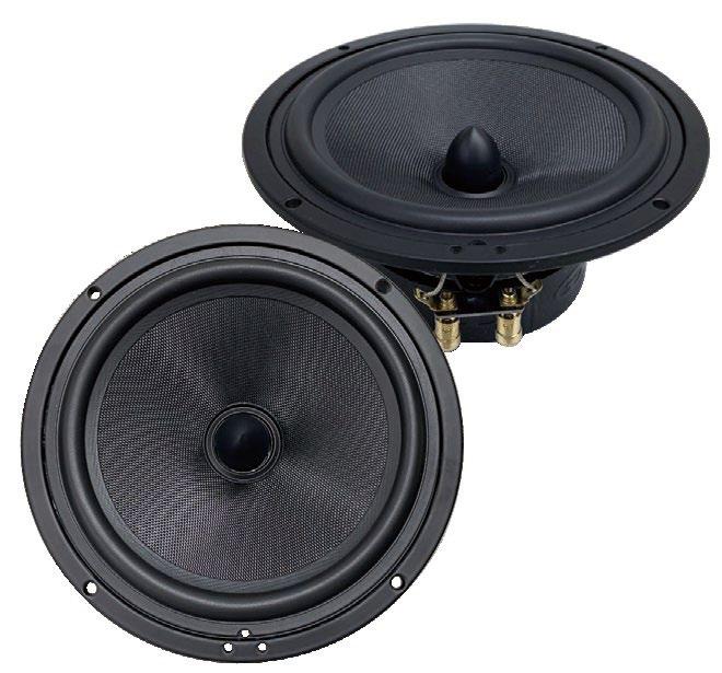 ケブラーとファイバーグラスをコンポジットさせたブラックコーンとしなやかな ラバーエッジが、驚くほどスムーズなナチュラルサウンドを創出。深みのある 中低域を奏でるベースウーファーがES-06です。センターに配されたポリマー ダストキャップがコーンの剛性を飛躍的に高め、サウンド全体に適度な輪郭や メリハリをプラス。3ウェイシステムのミッドベース用スピーカーとしはもちろん、 2ウェイのワイドレンジミッドウーファーとしても実力を発揮します。