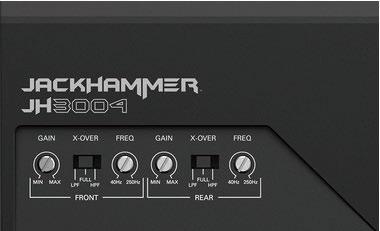 JACK HAMMER(ジャックハマー)シリーズは往年の機種名にふさわしいアンプとして開発されたMTX Audioの 次世代パワーアンプです。 洗練された黒い筐体に上面にコントロール部分を配置、RCA非装備のソースユニットに 対応したハイレベルインプット対応とシンプルかつ使いやすさを追求した設計がなされています。電源起動時にはアンプ 上面のアクセントLEDが点灯。カスタムインストールにも最適なデザインとなっています。
