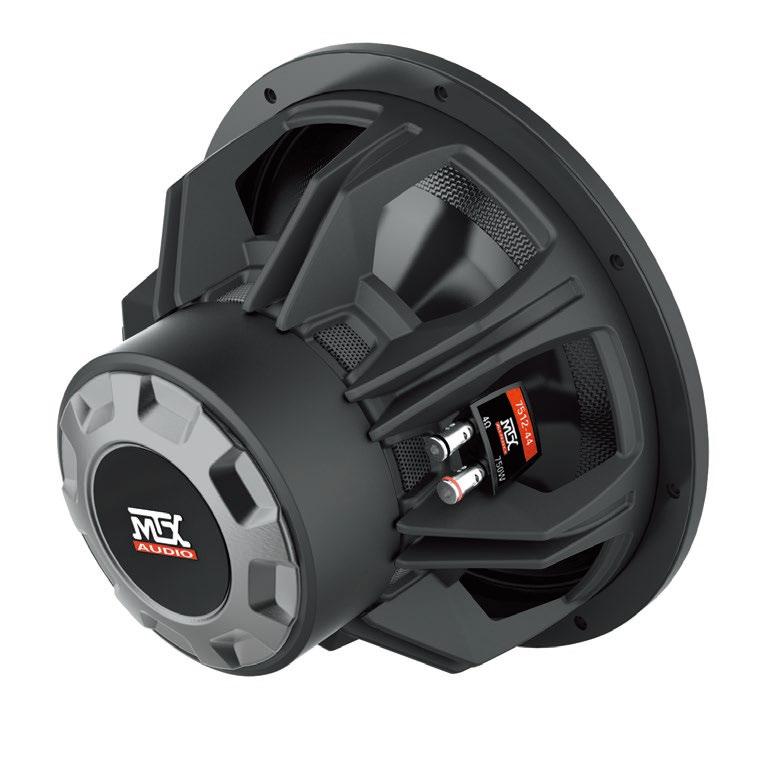 新シリーズS65はスクエアサブウーファーの要ともいえるラバーサラウンドのコーナー部分にMTX Audio独自の特許技術サラウンドジオメトリー(US Patent #7,275,620) を採用。従来の円形サブウーファーよりも広い表面積を備えることでXmaxが向上し、高音質再生を実現します。またプログレッシブサスペンション、 2.0インチボイスコイル、スパイダープラート、コーンとラバーサラウンドの接合部を縫い付ける技術”スティッチコーン”の採用で、高い耐久性を誇ります。