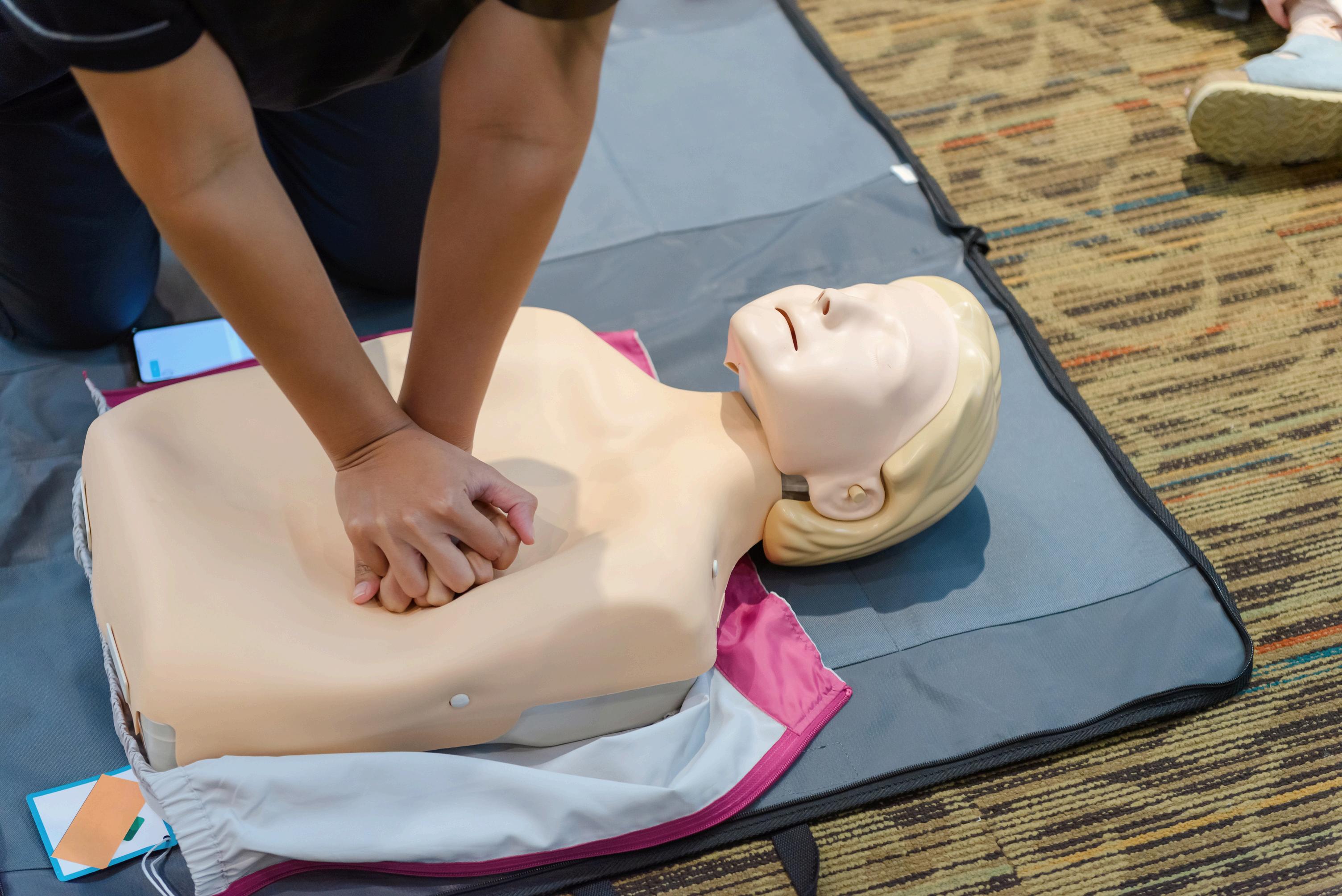 - Paso 2: Coloca las manos en el centro del pecho de la víctima y realiza 30 compresiones a un ritmo de 100-120 por minuto.