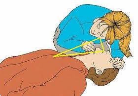 - Si la víctima está inconsciente, inclina la cabez levanta el mentón para abrir la vía aérea.