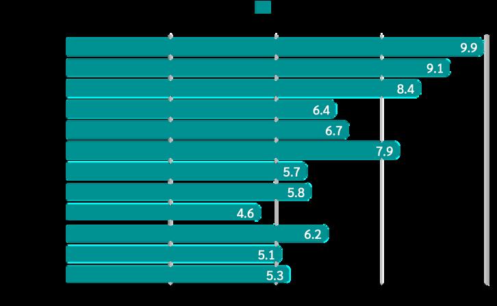Con una participación del 13% del total del ingreso, y un crecimiento del 2% del año 2022 al 2023, así: