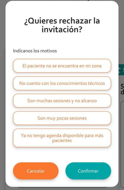 Si decides rechazar a un paciente, te aparecerá una ventana emergente.