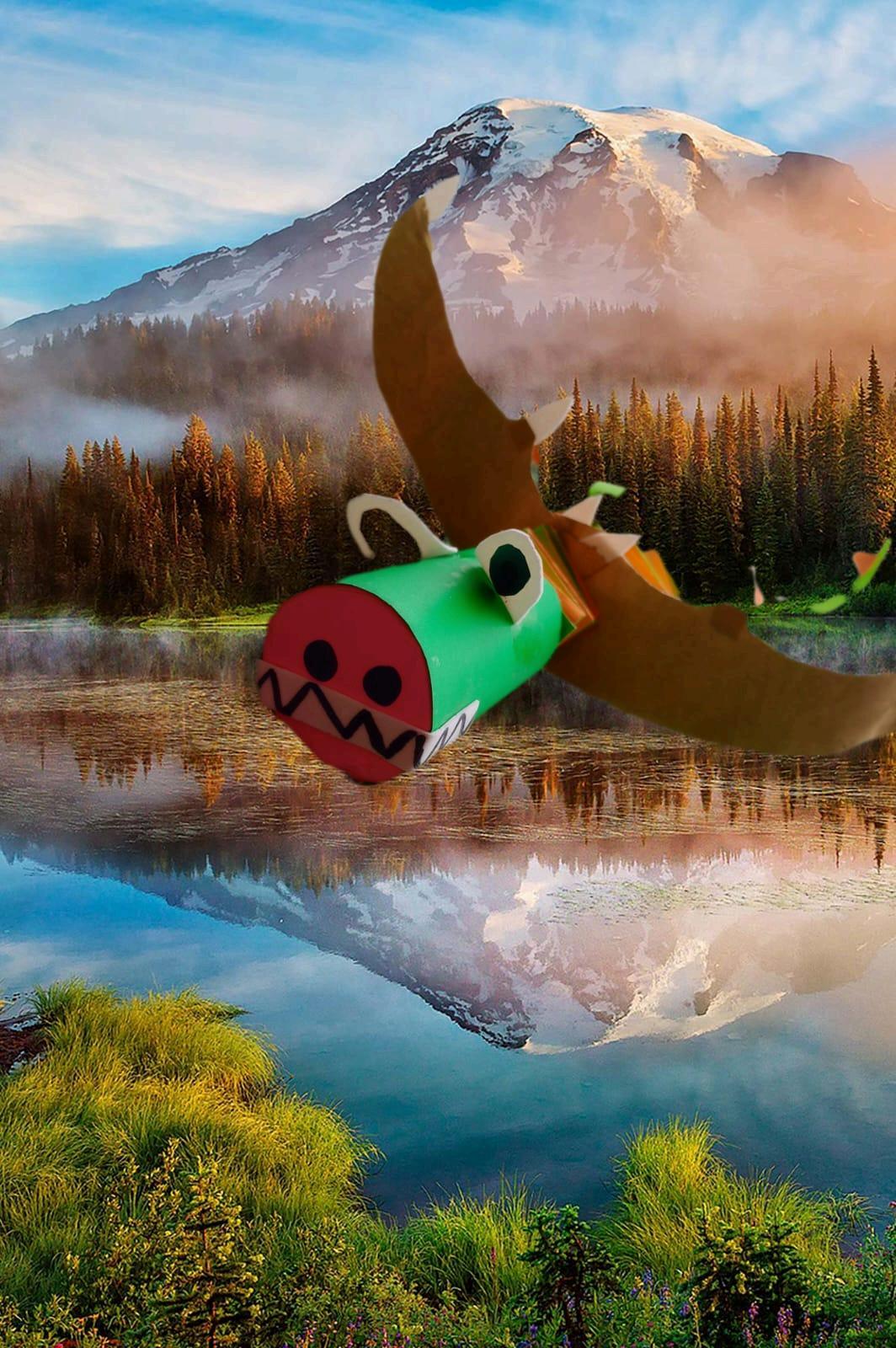 Es un dragón que pesa muy poco, pesa como una pluma Su tamaño es mediano como el mapa de mi aula.
