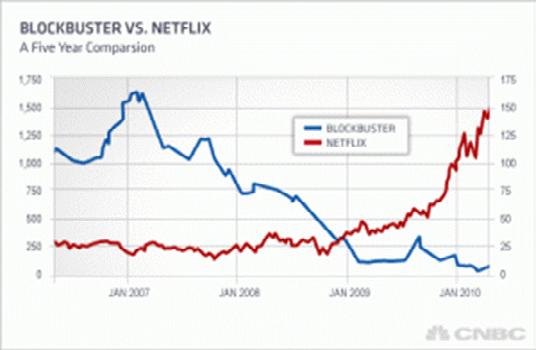 Tabla 1. Gráfica del valor de la empresa blockbuster en comparación a Netflix 2006-2010