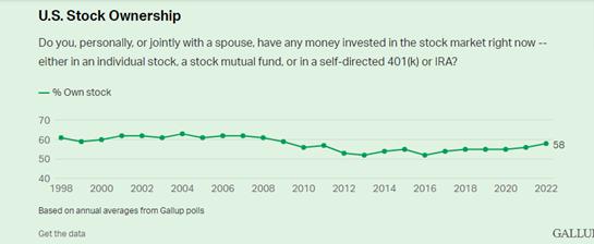 Jones, B. L. S. a. J. M. (2023, January 25). What Percentage of Americans Own Stock? Gallup.com. https://news.gallup.com/ poll/266807/percentage-americans-owns-stock.aspx