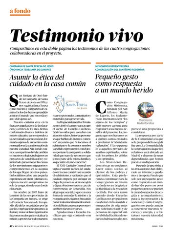 Compartimos en esta doble página los testimonios de las cuatro congregaciones colaboradoras en el proyecto.