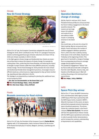 (Ed/nc) On 16th July, the European Commission adopted the new EU Forest Strategy for 2030, which contributes to the “Fit for 55” package of measures aimed at achieving greenhouse gas emission reductions of at least 55% by 2030 and climate neutrality in 2050 in the EU. In the fight against climate change and biodiversity loss, forests are essential as they help to reduce the impacts of climate change, for example by cooling down cities, protecting from heavy flooding, and reducing the impact of drought. Europe’s forests suffer from many different pressures, including climate change. The EU Forest Strategy for 2030 promotes the most climate and biodiversity friendly forest management practices, encourages resource efficient wood use, and announces a legal proposal to step up forest monitoring, reporting and data collection in the EU. The strategy is accompanied by a roadmap for planting 3bn additional trees across Europe by 2030. → See also our documentation on the Green Deal, p.17 Web Forest Strategy: https://bit.ly/2UxrG5F Web 3bn trees: https://bit.ly/2UYtnJd