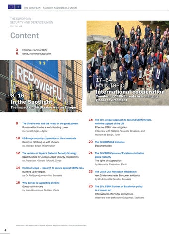 21 The EU CBRN Centres of Excellence Initiative gains maturity The spirit of cooperation by Nannette Cazaubon, Paris