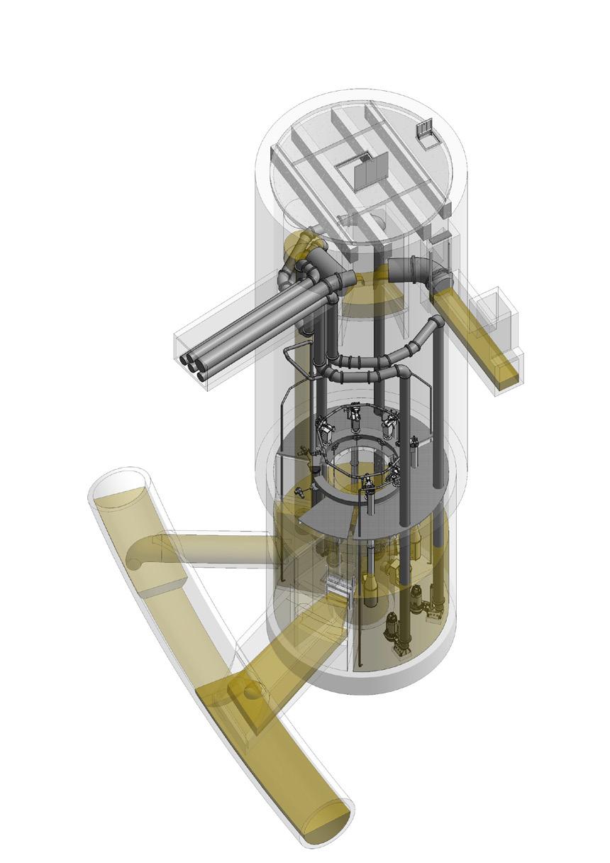 Upstream of the WW shaft, within the deep rock, an opening will be made in the side of the MTI sewer. This opening will allow raw wastewater to be conveyed to the WW shaft via the MTI interception chamber. After screening the raw wastewater of solids, the wastewater will be collected in two cells at the base of the WW shaft and then pumped to the ETS building via forcemains.